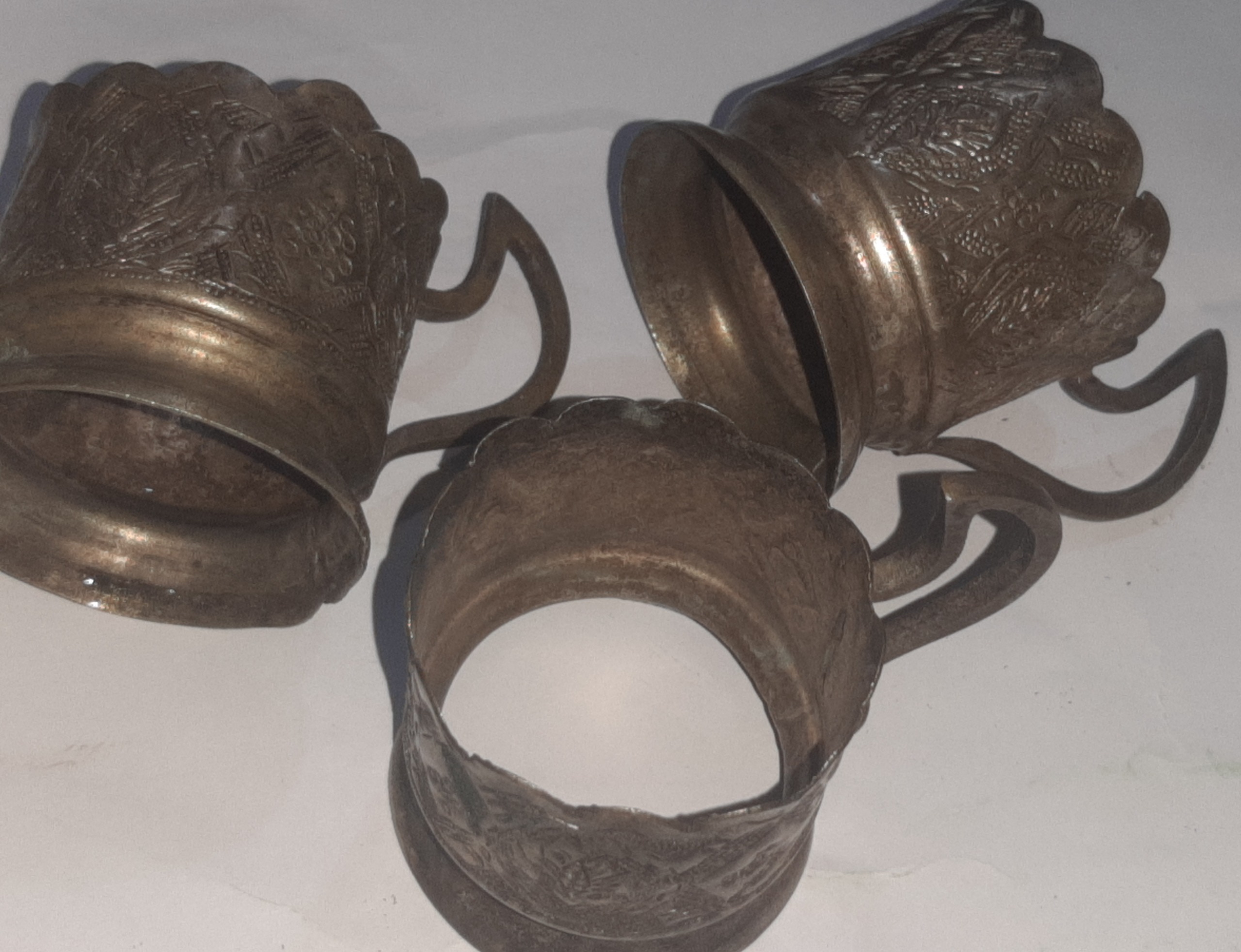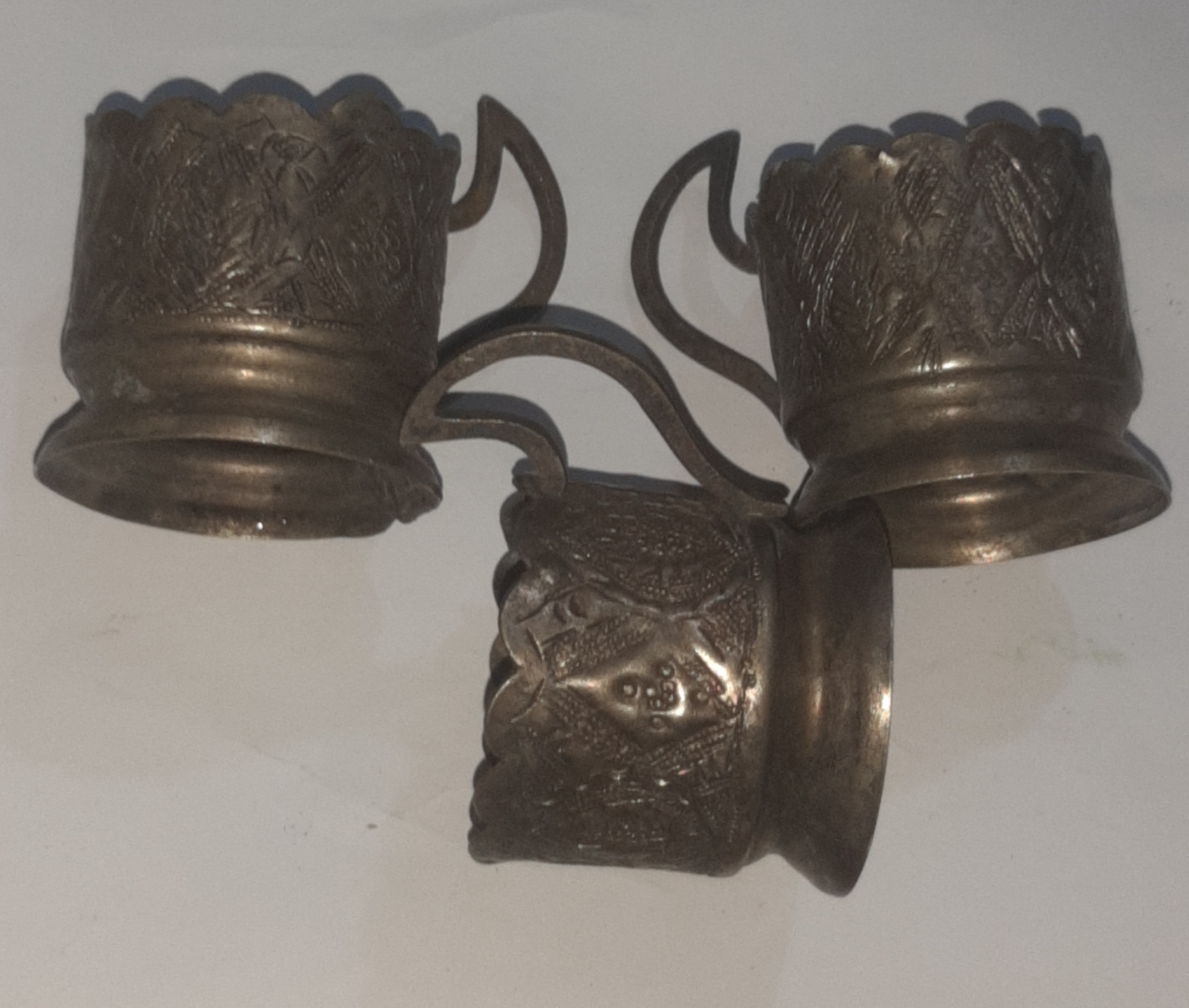 3 عدد انگاره گالش یا زیر استکانی قدیمی قلم زنی