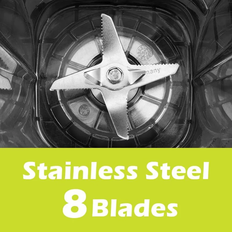 • تیغه های سخت شده: با تیغه های فولادی ضد زنگ استاندارد سخت شده می توانید یخ را کاملا خرد کنید، مخلوط کنید، پوره کنید و کنترل کنید.