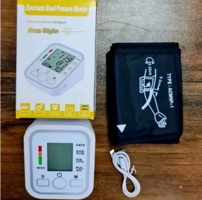 دستگاه فشارسنج دیجیتالی بازویی مارک ارم استایل جنس اصلی همراه با سیم شارژ وبا قابلیت اندازه گیری خودکار فشار خون و ضربان قلب و اعلام و گفتن آن به زبان فارسی لازم به ذکر است که دستگاه فوق هم با باتری و هم با شارژر موبایل و هم با پاور بانک کار میکند