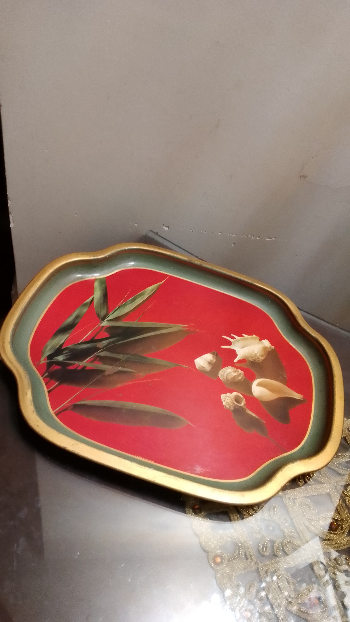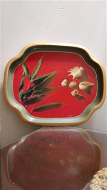 سینی فلزی ضخیم انگلیسی مارکدار قدیمی خوشرنگ و لعاب