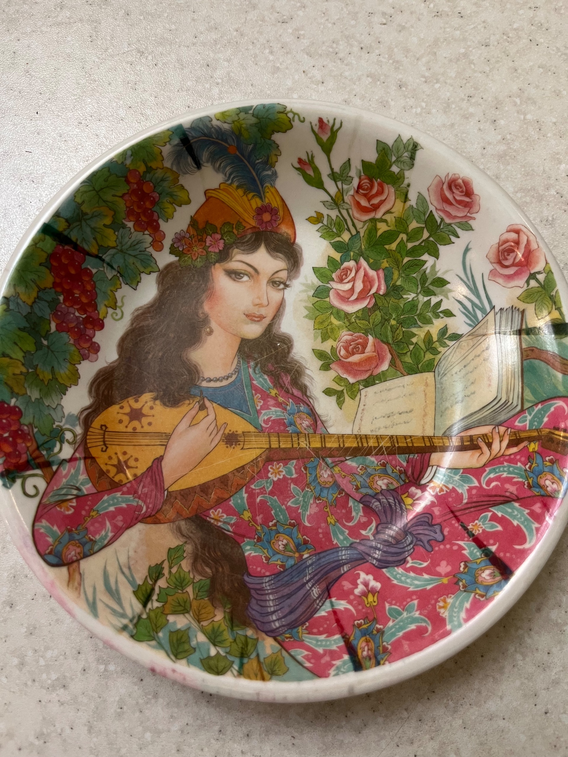 پیش دستی قدیمی ملامین طرح نوازنده