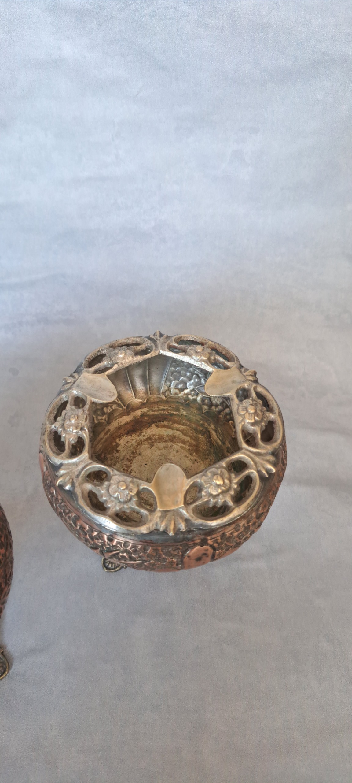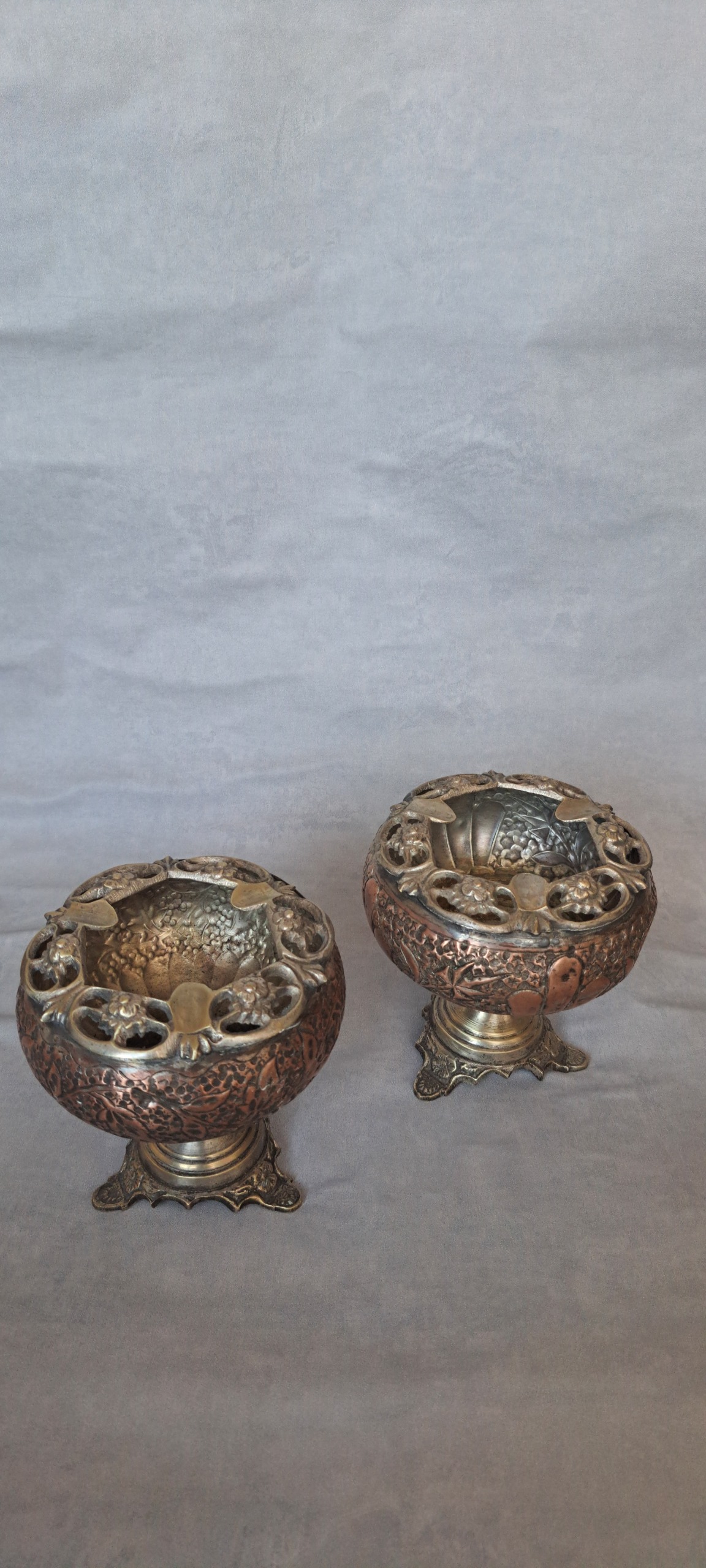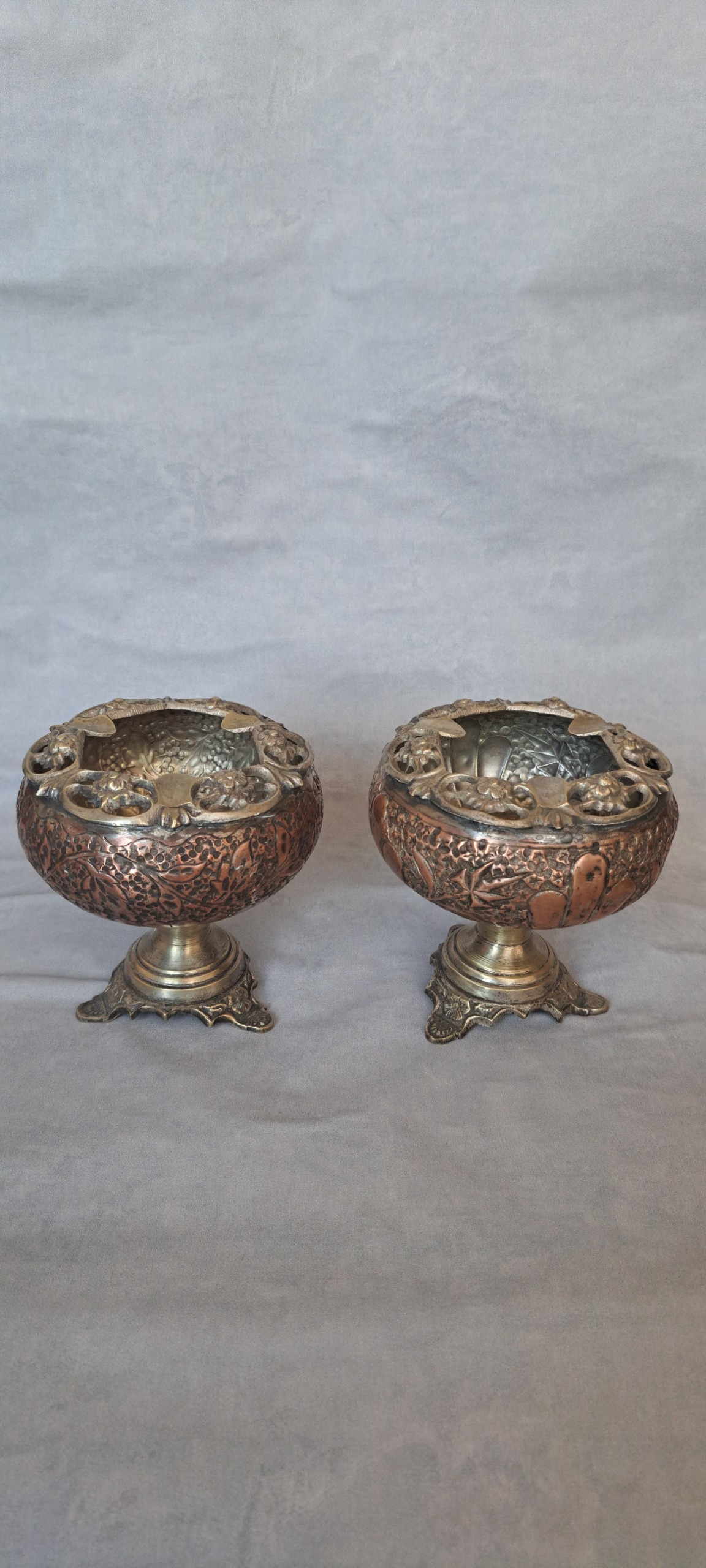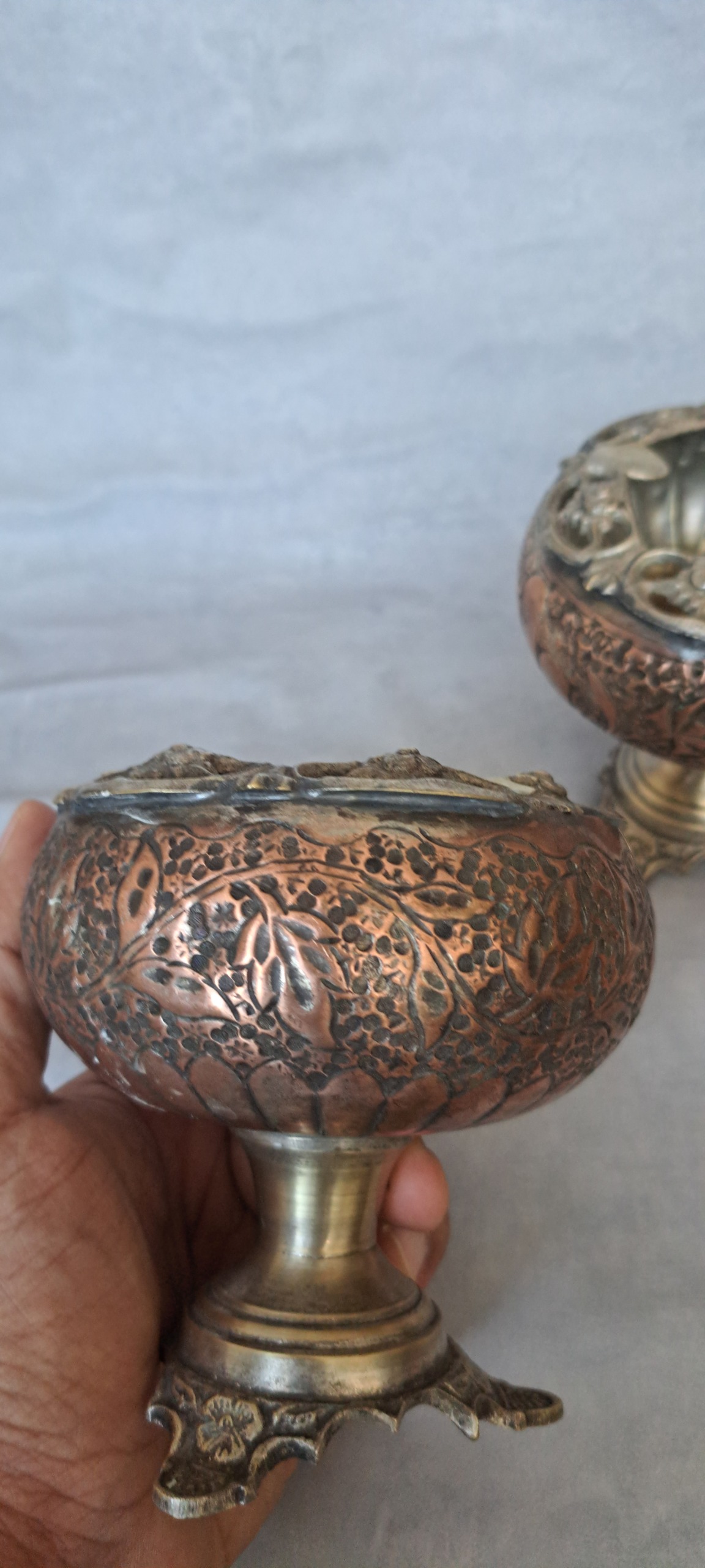 جفت زیر سیگاری قدیمی قلم مسی ، بسیار زیبا سنگین وزن تقریبا و خوشگل قیمت جفت