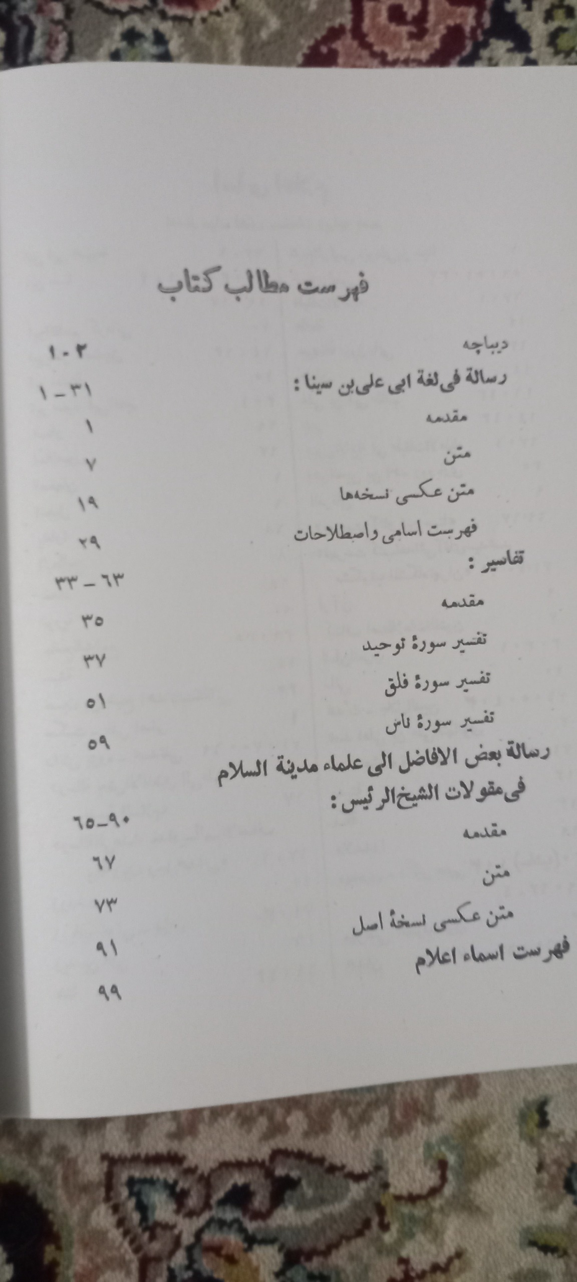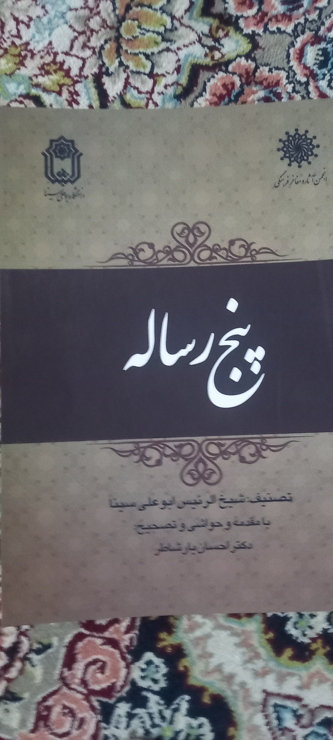 پنج رساله مجموعهای از چند اثر ابن سینا، در موضوع لغت و تفسیر برخی از سورهها و... است که رسالههای تفسیری توسط فخر الدین بن احمد رودباری، در حدود قرن سیزدهم قمری، به زبان فارسی ترجمه شده است و بقیه به همان زبان عربی باقیمانده است جلد شومیز قطع وزیری 100 صفحه تصحیح و مقدمه احسان یارشاطر