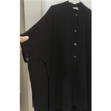 مانتو مشکی(کاملا مشکی،اصلا بور نیست،برای عکاسی فلش زدم که جنس ومدلش مشخص بشه)،جنس کرپ جودون بسیار با کیفیت،مدل خاص،حالت کیمونو داره وپشت بلندتر از جلو هست،سایز فری سایزبرای لاغرها لش وبرای سایزهای بزرگ هم مناسبه