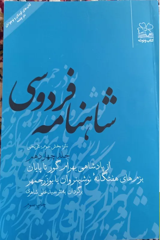 شاهنامه فردوسی به نثر بخش سوم تاریخی جلد چهارم از پادشاهی بهرام گور تا پایان بزمهای هفتگانه و نوشین روان با بوذرجمهر مناسب برای کودکان و نوجوانان 228 صفحه جلد شومیز قطع رقعی