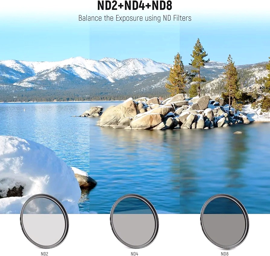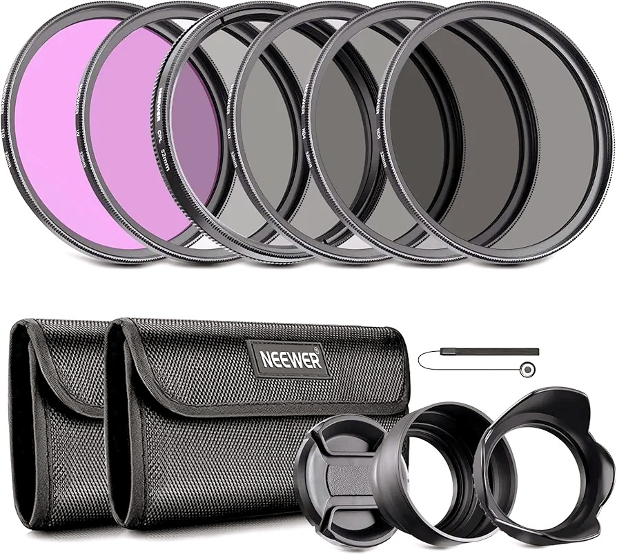 کیت فیلتر لنز NEEWER 52mm ND: UV، CPL، FLD، ND2، ND4، ND8، هود لنز و درپوش لنز سازگار با دوربینهای DSLR کانن، نیکون، سونی، پاناسونیک با لنز 52 میلیمتری