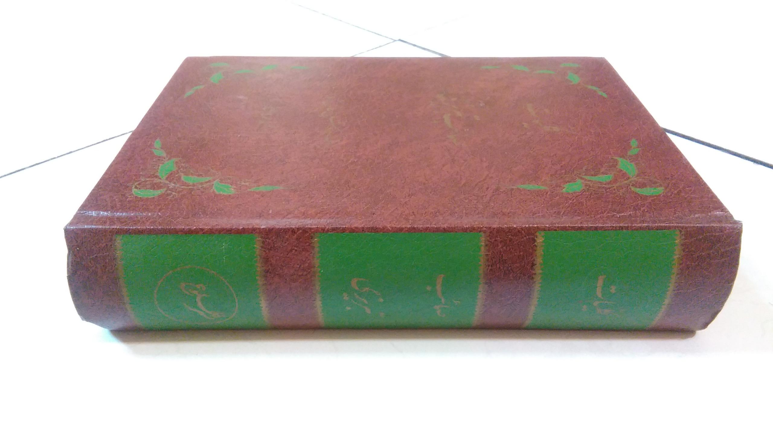 رو و پشت جلد و عطف کتاب بدلیل قدمت چاپ برخی زدگی و لکه و فرورفتگی هایی دارد.