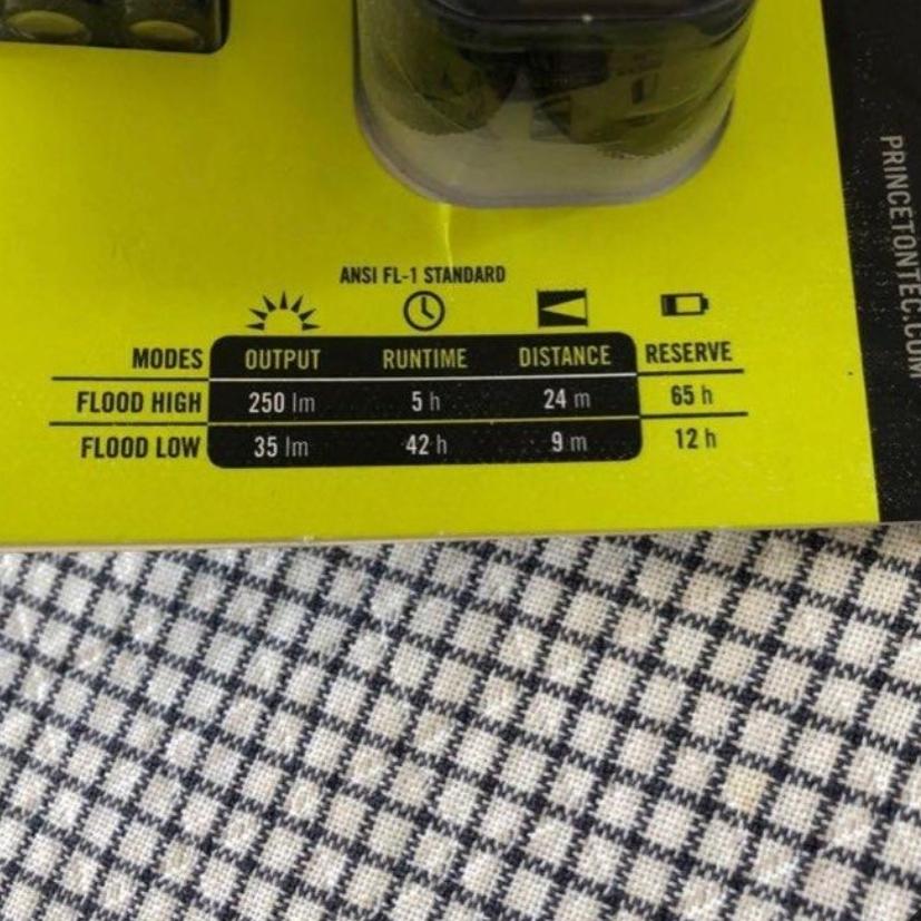 چراغ قوه پیشانی ضد آب کوهنوردی پرینستون اصل کشور آمریکا قدرت نوردهیش 250 لومن واقعی و اصله سه عدد باتری نیم قلمی میخوره سهحالت نور دهی داره در حالت قوی حدود 5 ساعت و در حالت نوردهی ضعیف حدود 42 ساعت نور میدهد کاملا نونو هست کلا دو بار برا غار نوردی استفاده میکردم اما الان 350 لومن شو خریدم این اضافی هست برام