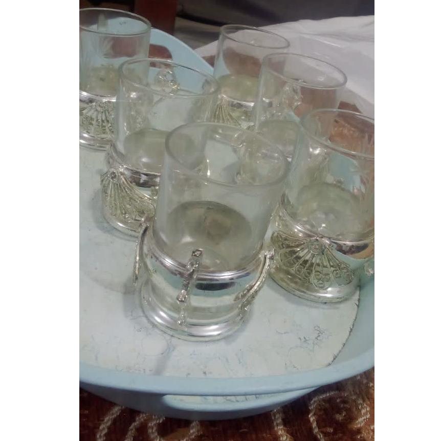 استکان قدیمی با انگاری برنجی آبکاری شده