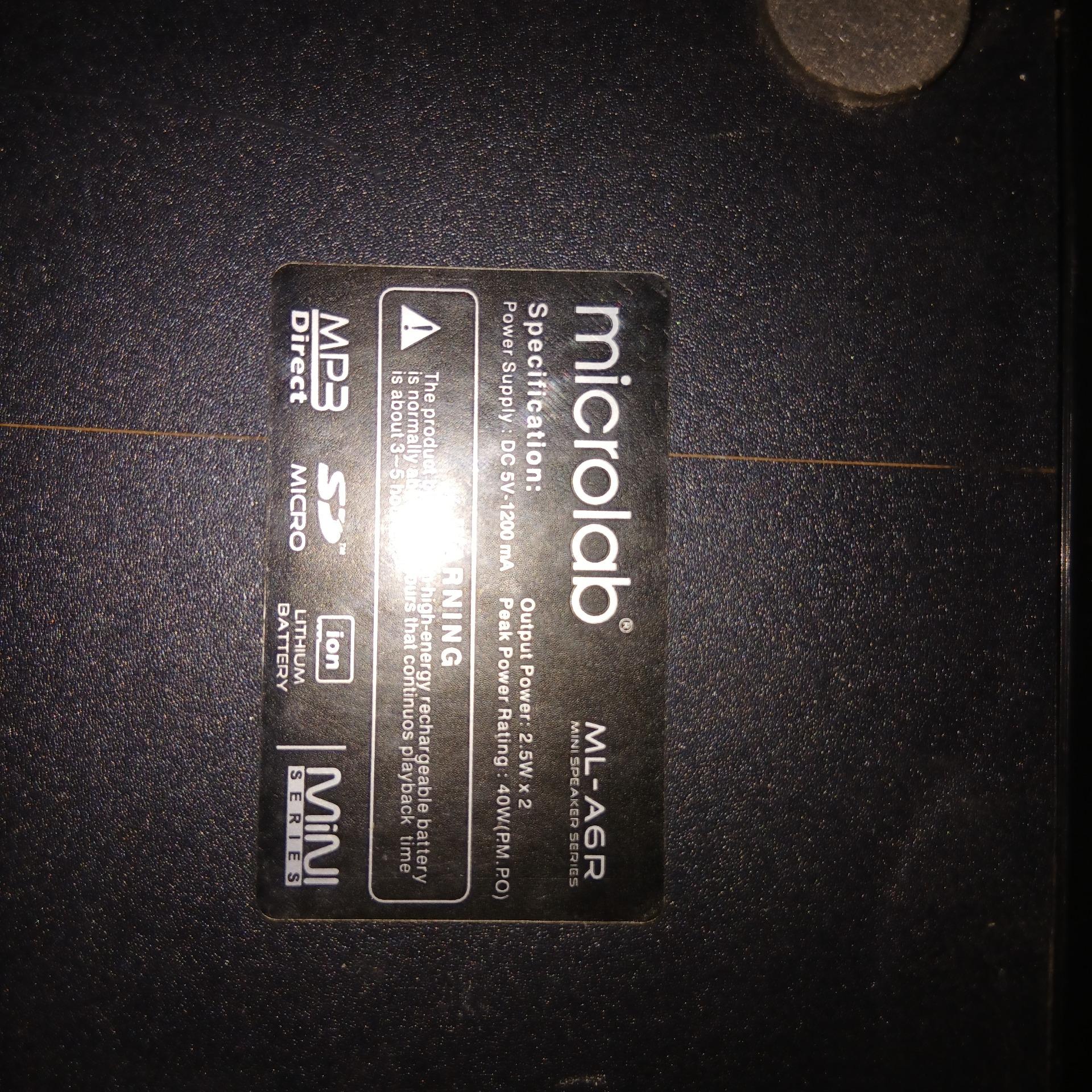 باند اسپیکر کنترلی دار مارک microlab همراه با رادیو وجای فلش و مموری ومیکرو مموری همراه باساعت دیجیتال زنگ دار فیش aux همراه میخوره کارکرده ولی تمیز وورجه یک ضمنا شارژی هم هست وبا برق ترانس موبایلی هم کار میکنه وهم شارژ میکنه فقط ایرادی که داره باتریش باید عوض بشه که روکار ودرپوش باز وبست داره وخیلی راحته باتری هم نوکیای قدیمی میخوره مدل al4 وتو بازار فراوونه وارزان البته باتری روش هست ولی باید تعویض بشه که راحت با شارژش چندین ساعت استفاده کنی شارژر هم داره با کابلش