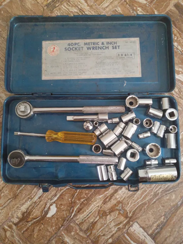 تعدادی آچار بکس و دو عدد آچار جغجغه ای
