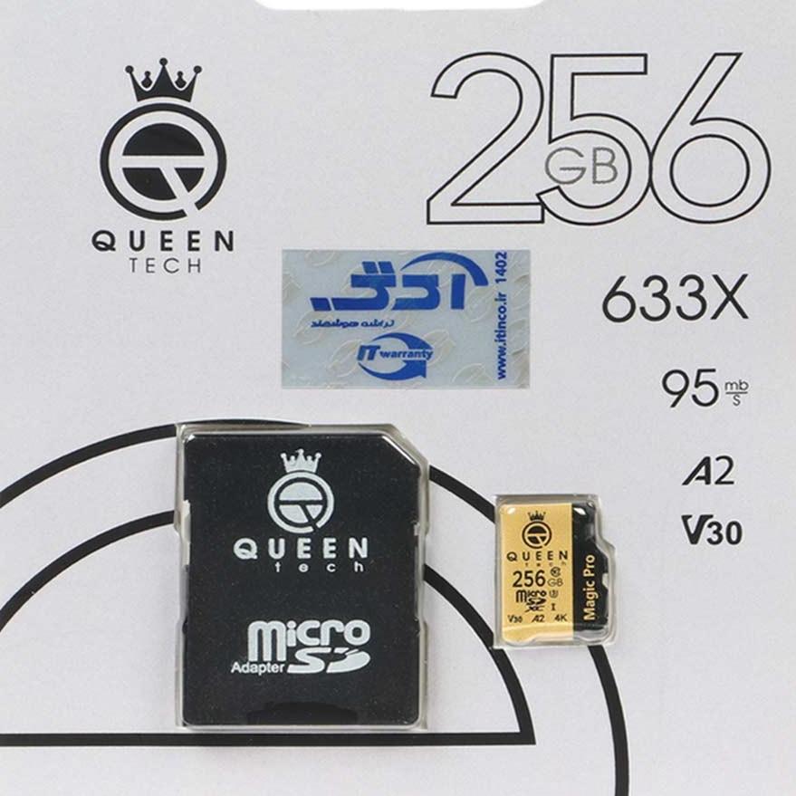 مشکی طلایی (گارانتی مادامالعمر شرکت آی تین) Queen tech microSDXC & adapter U3 Class 10 633X 95MB/s 256GB