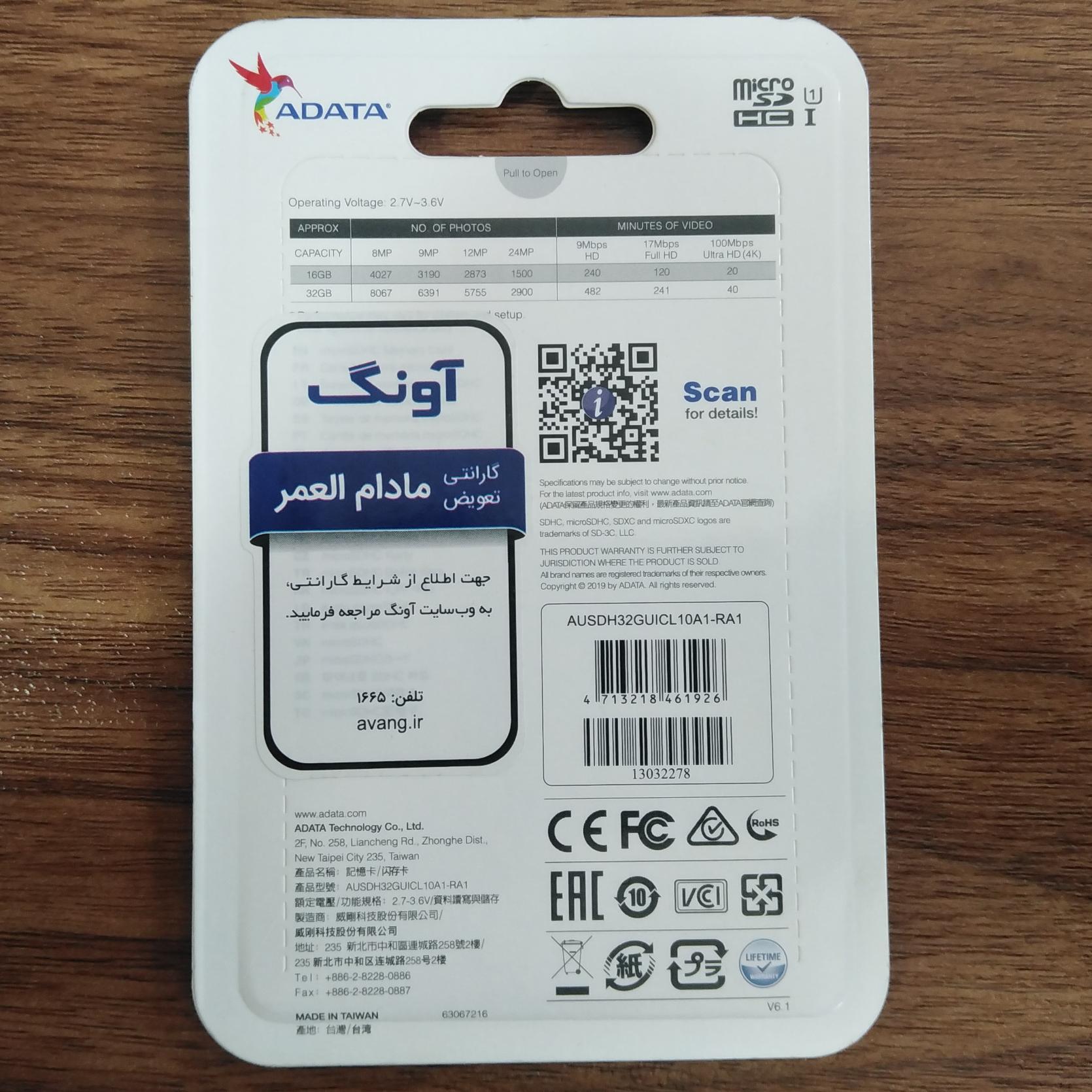 adata 32GB کلاس 10 سرعت گارانتی مادام العمر آونگ