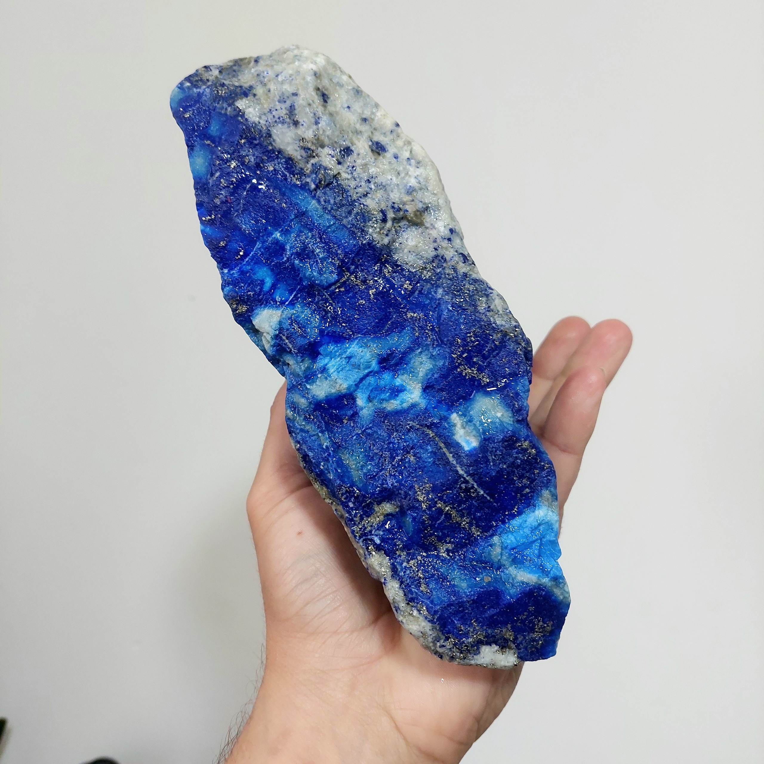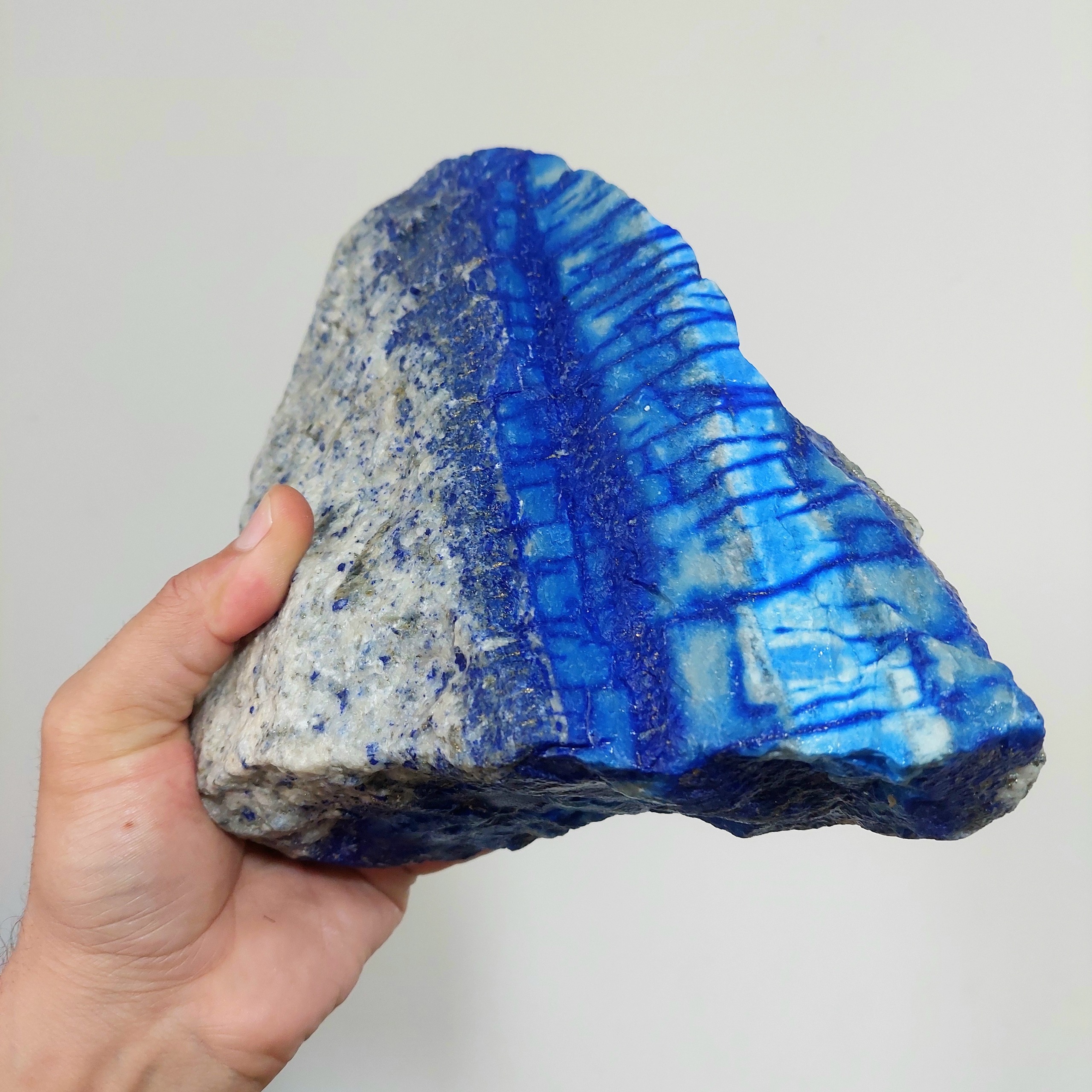 کلوخه بینظیر سنگ لاجورد افغان اصل کاملا طبیعی و معدنی با رنگ و نقش نگار تکرار نشدنی با رگه های پریت طلایی به وزن 3600 گرم یه نمونه کار بینظیر و فوق العاده خاص و کمیاب