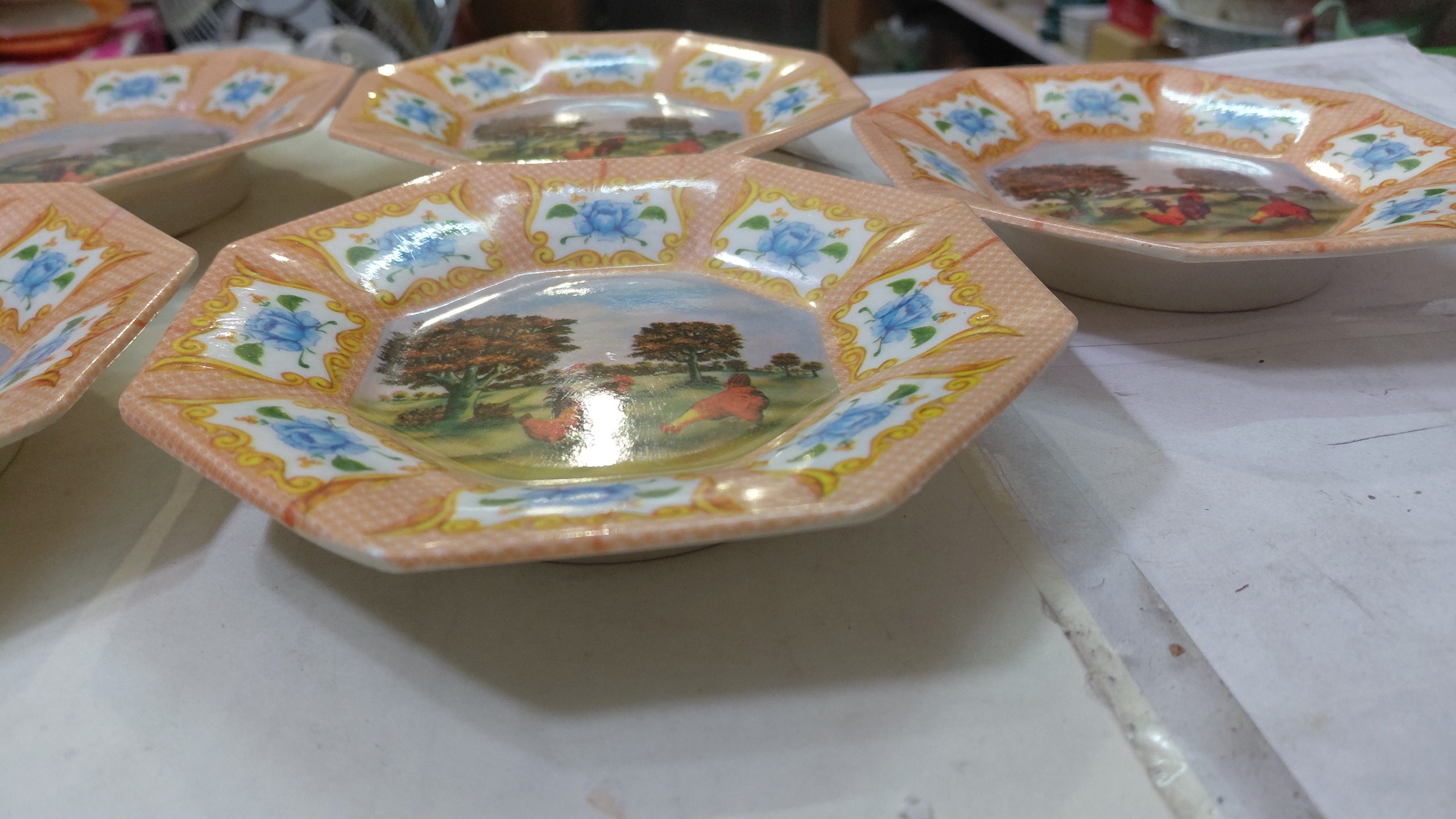 تعداد 5 عدد پیش دستی ملامین 8 ضلعی با نقش منحصر و خاص به قطر 15 سانت.فروش باهم.