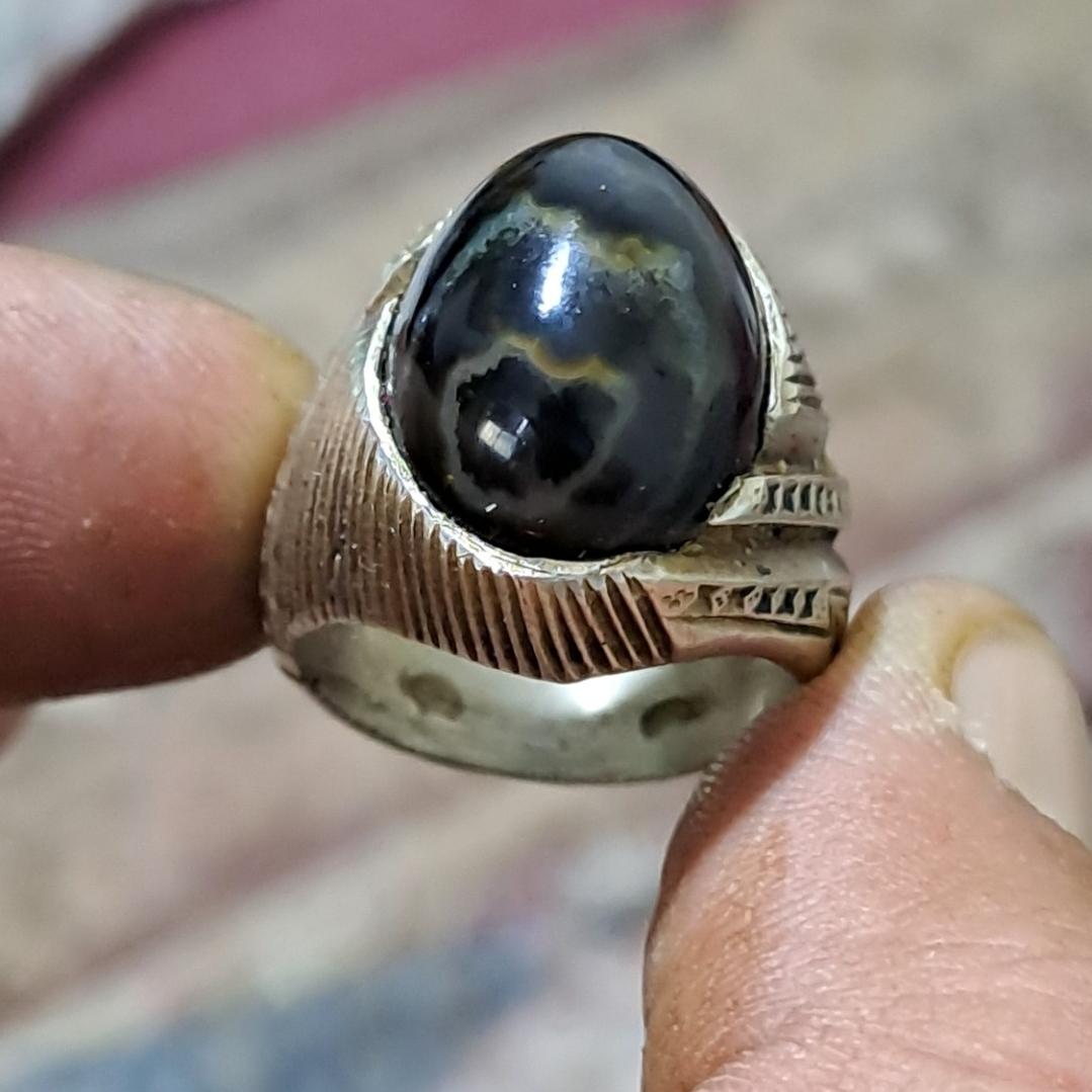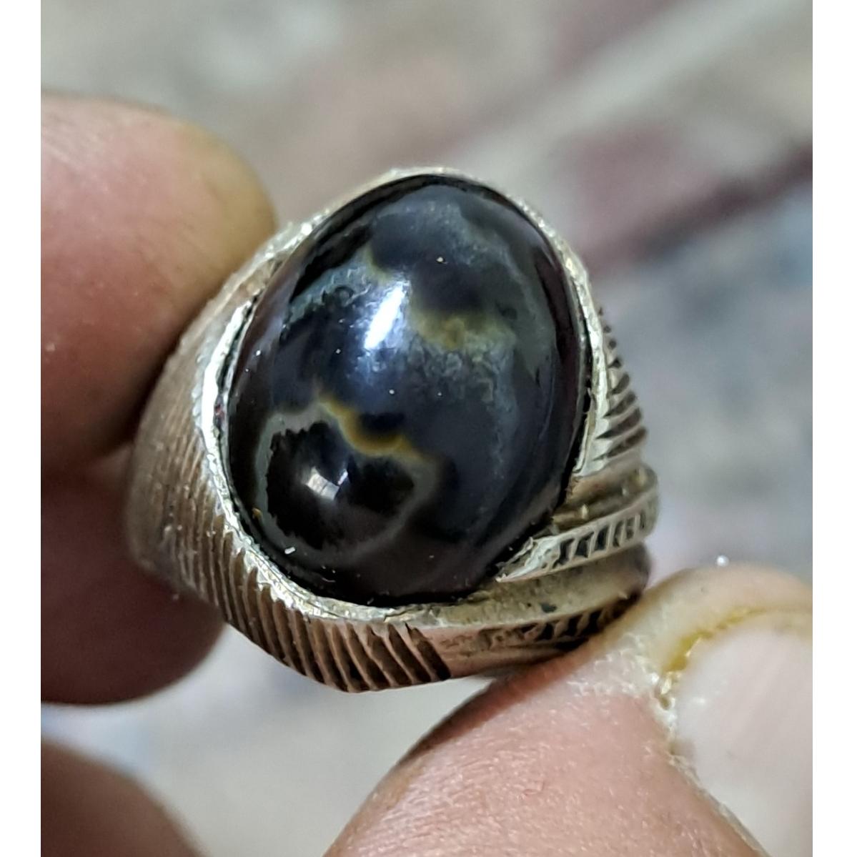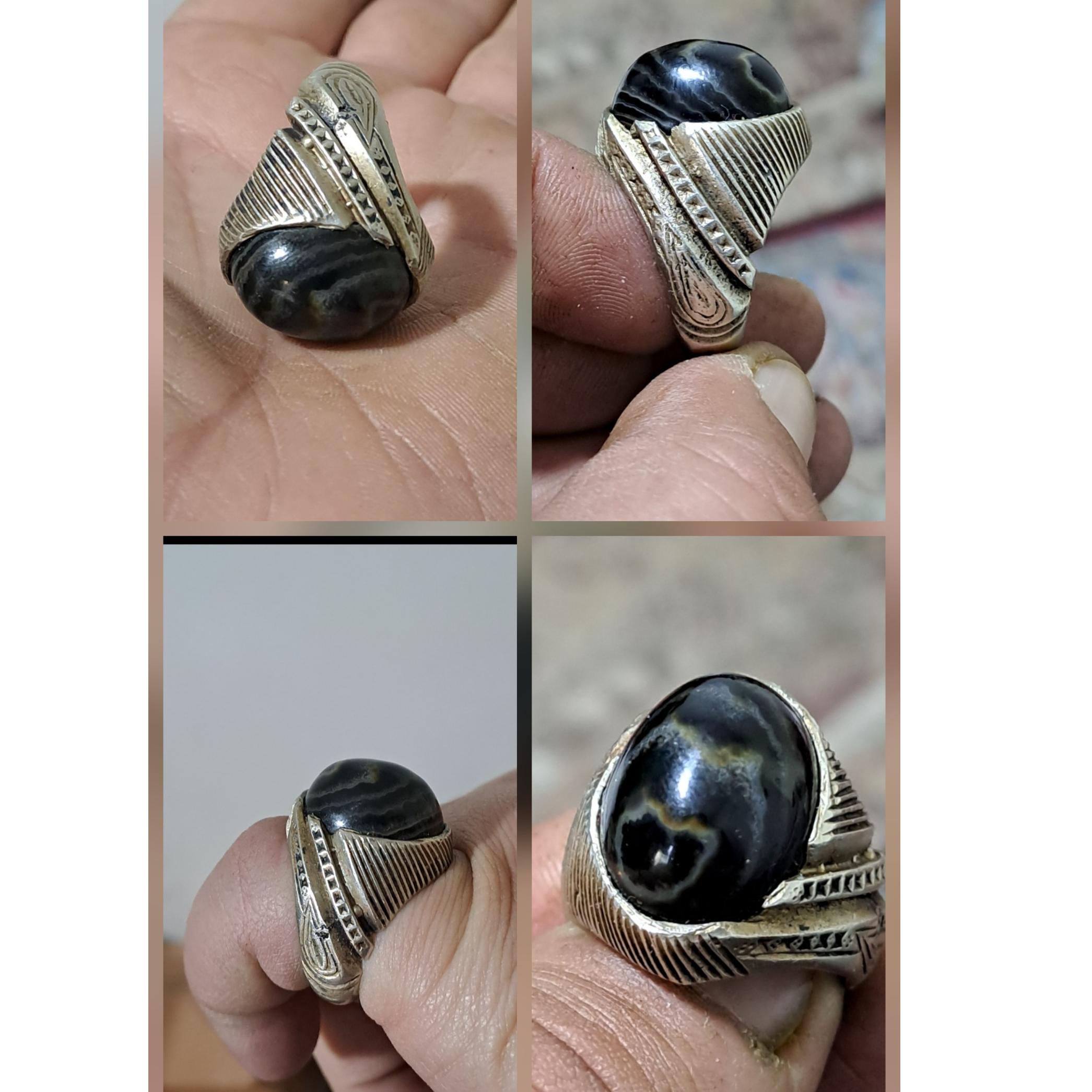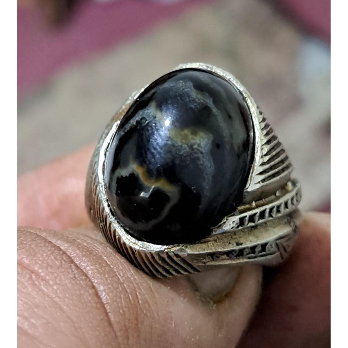 انگشتر کمیاب،پر انرژی،خاص،زوعه سیاه شاه مارکبری،پوست ماری،رگه ای،کاملا مصور،واضح، خاص..