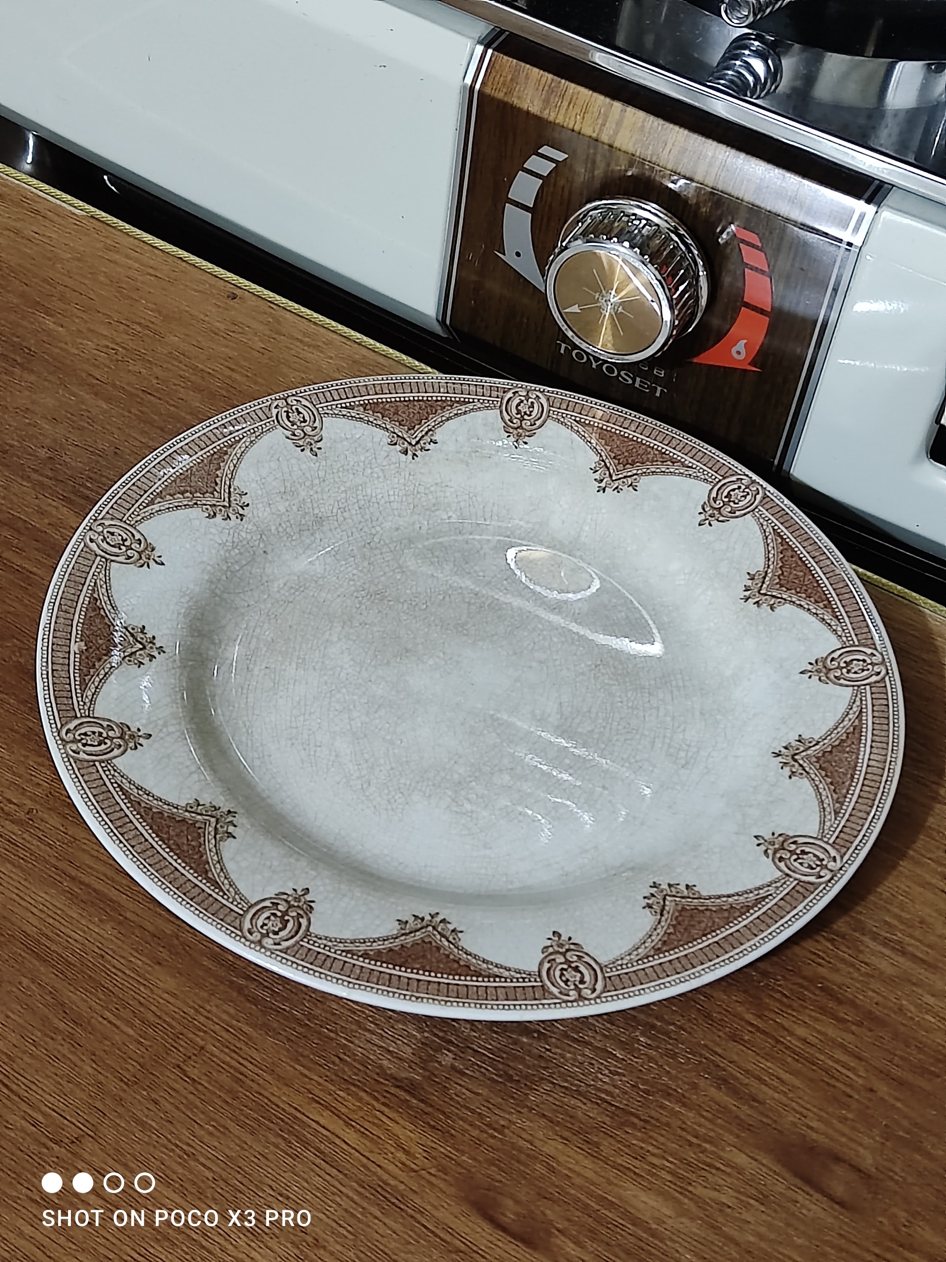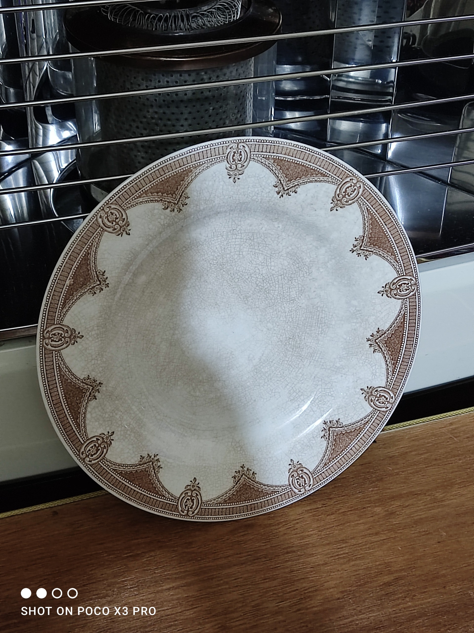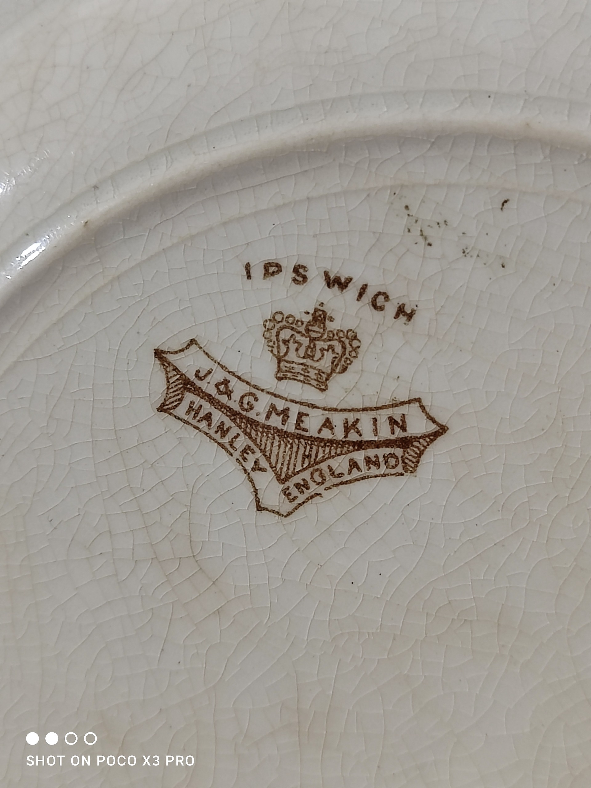 بشقاب قدیمی انگلیسی سالم و تمیز و بکر مطابق تصاویر 13 سانت قطر بشقابه بسیار محکم و جوندار جنس اینا دقیقا نمیدونم چیه من اینجا سفال ثبت کردم اما طفال نیس اینا رنگ قهوه ای سیر و لونه زنبوری که وسطبشقاب ملاحضه میکنین اینا از خودشه فابریک همینجوریه این مدل ظروف قدیمی همشون همینجوری هستن ساخت انگلستان قدمت حدود صد سال سالم و تمیز بدون لب پر شدکی یا ترک یا شکستگی مطابق تصاویر فقط همین یکی هست