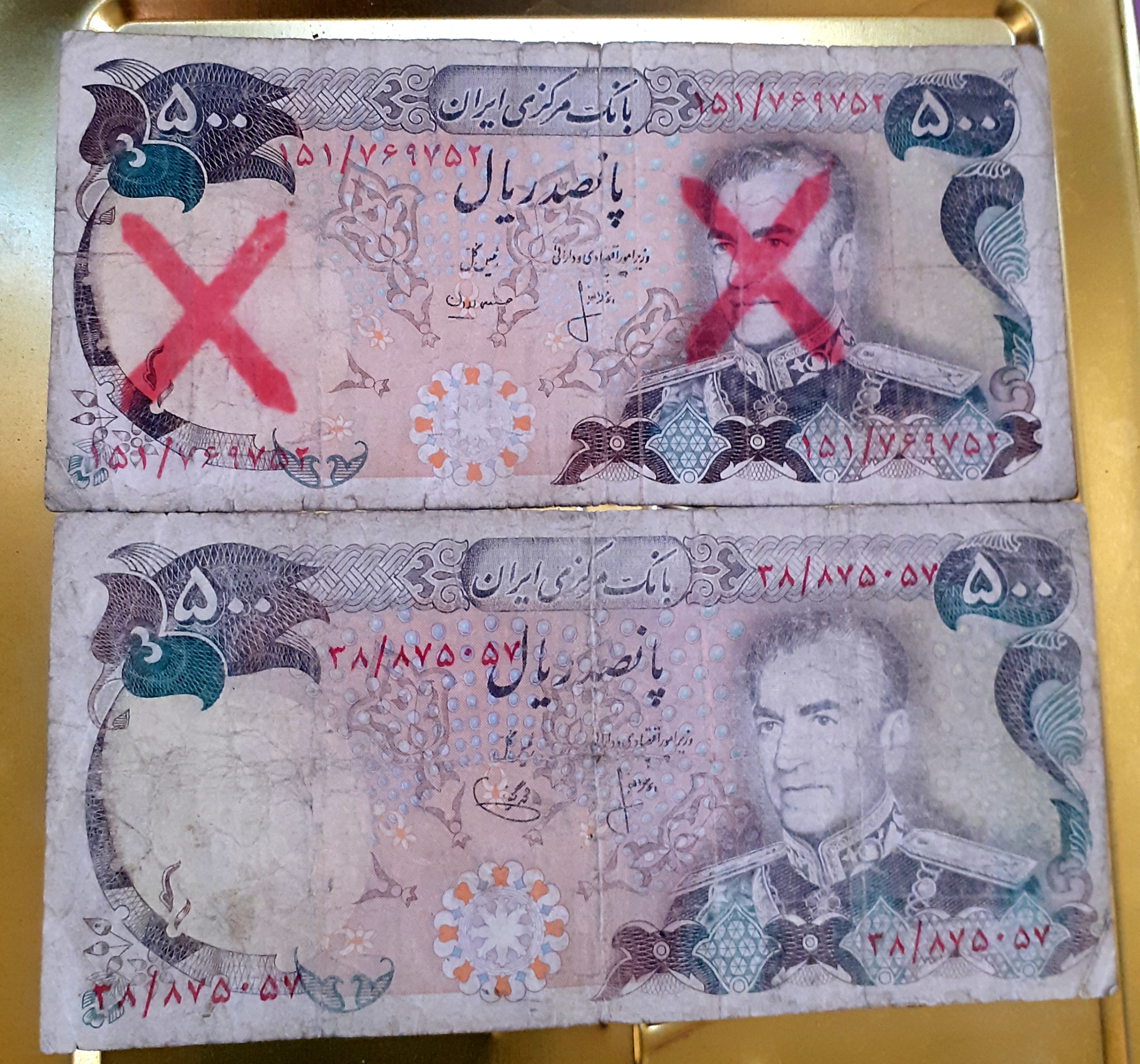 ست 2برگ اسکناس 500ریالی پهلوی سورشارژ و عادی