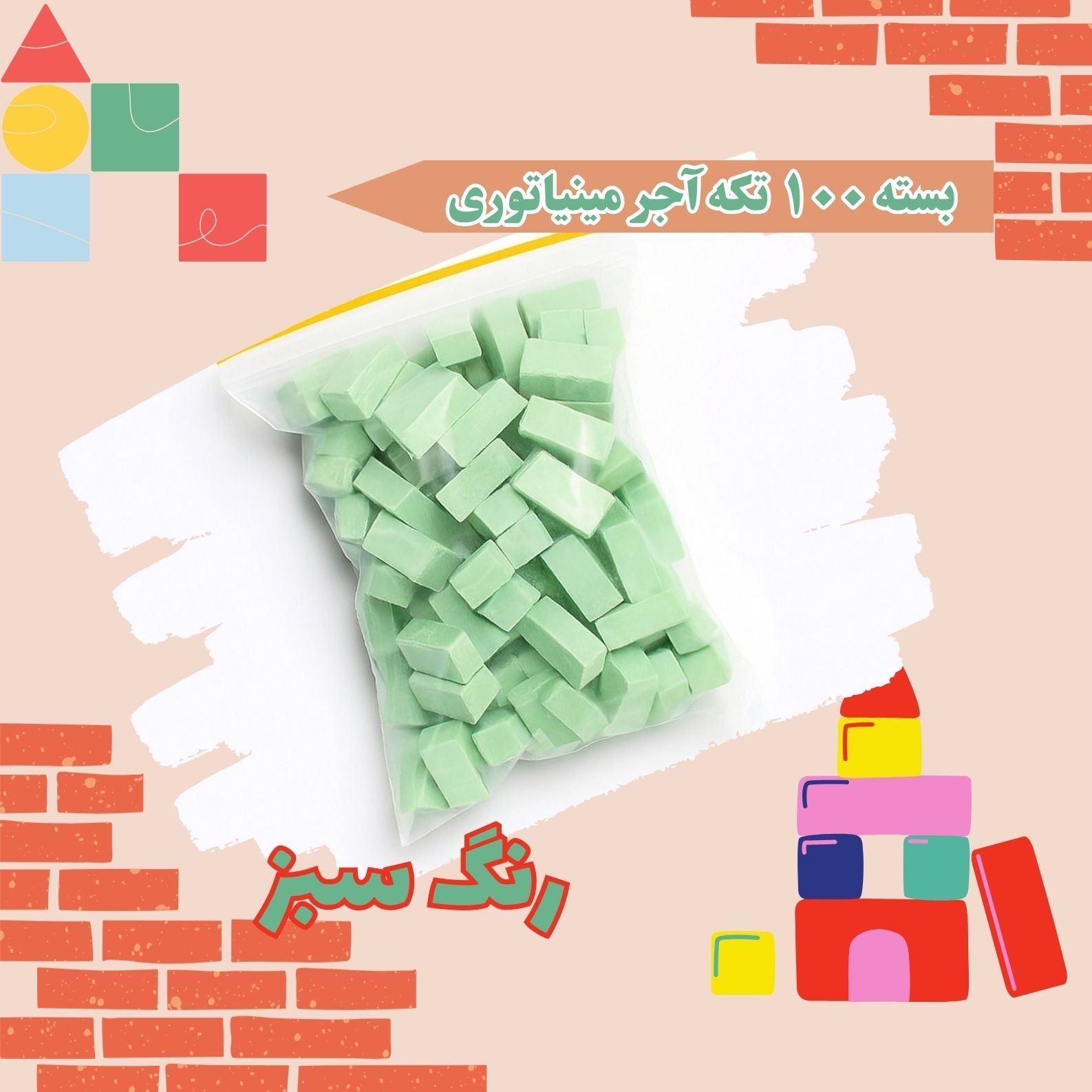 200 عدد آجرمینیاتوری رنگ سبز روشن سایز متوسط