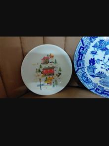 تعداد 2 عدد بشقاب و پیش دستی ملامین. بشقاب طرح چرچیل به قطر 23 سانت و پیش دستی طرح کوههای آلپ به قطر 16 سانت.فروش باهم