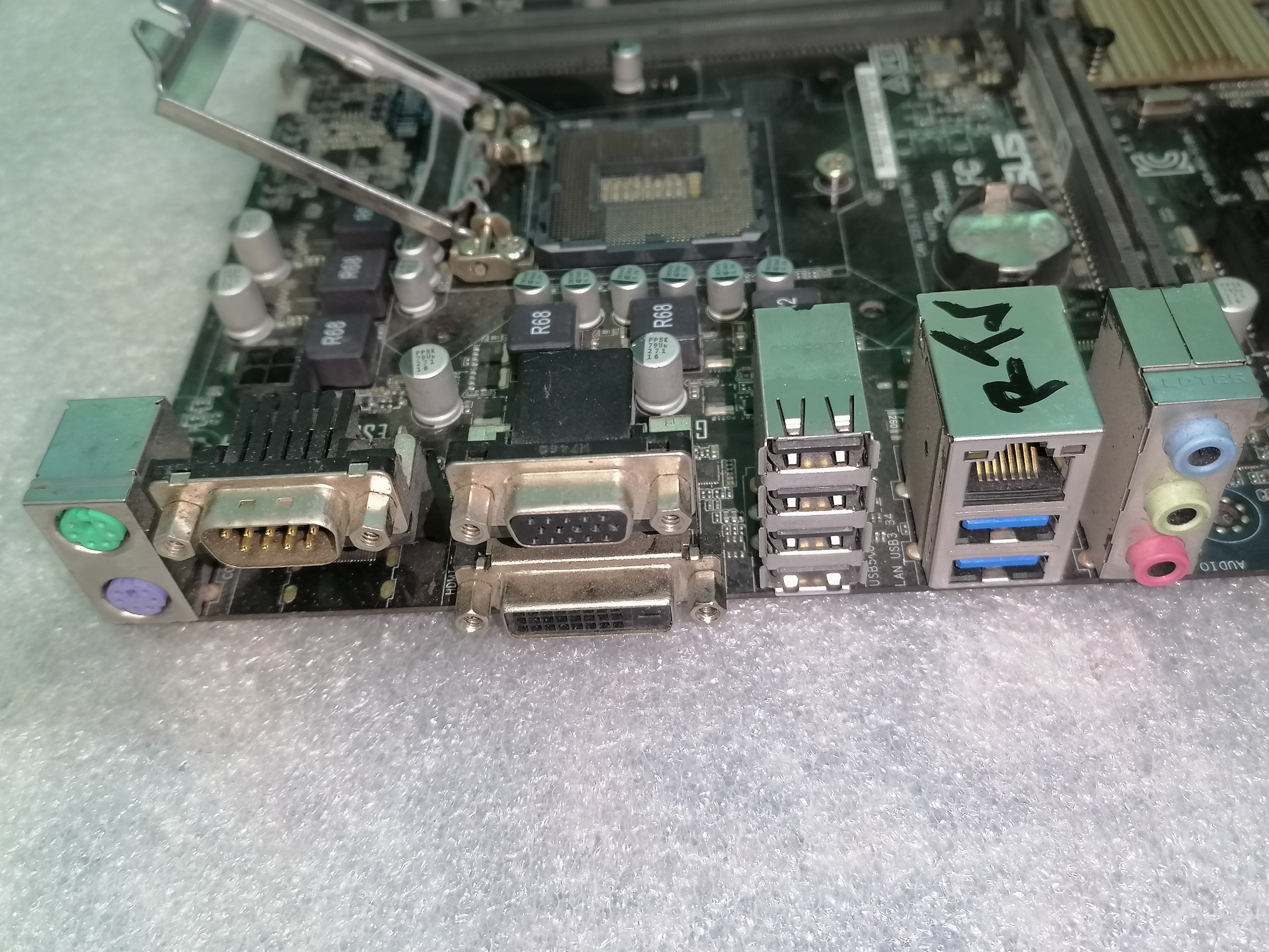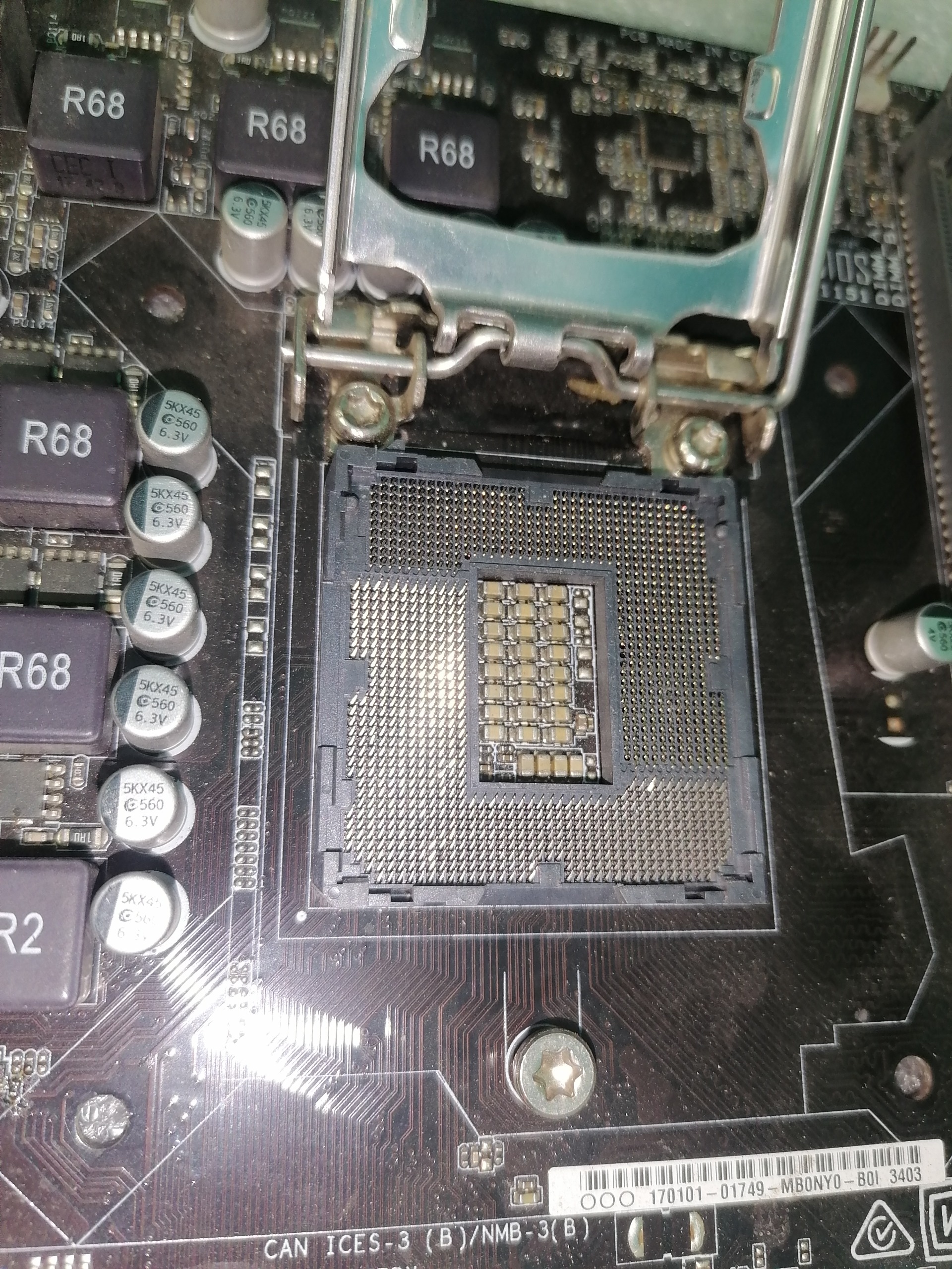 فقط موردی که مادربرد داره این هست که تعدادی از پایه های سوکت cpu مورد دارن که عکس هم گذاشتم که ببینید و به خاطر همین مورد یکی از اسلتهای رم ( سمت cpu ) کار میکنه و تک اسلت هست مادربرد.