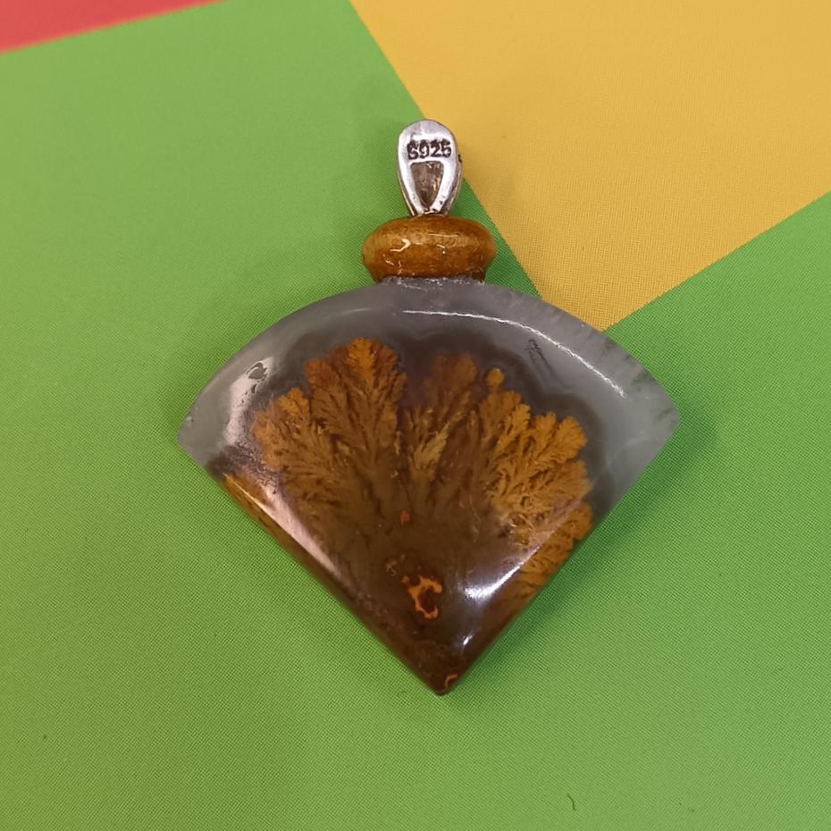 گردن آویز سنگ عقیق شجر گیره نقره