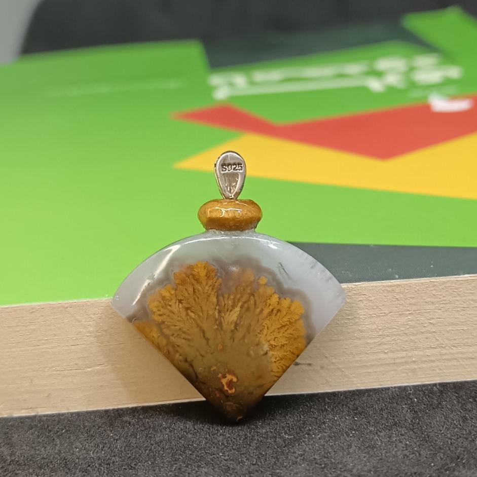 آویز زیبا و منحصربهفرد از سنگ عقیق شجر طبیعی و معدنی ترکیب گیره نقره 925 و حلقه چوبی در بالا مانند تصویر عکس پشت سنگ در تصویر آخر روی سنگ حفره بسیار کوچک و طبیعی از خود بافت شجر دارد ارسال بدون زنجیر