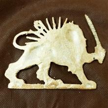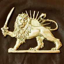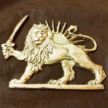 مجسمه برنجی تخت با طرح شیر و خورشید و شمشیر