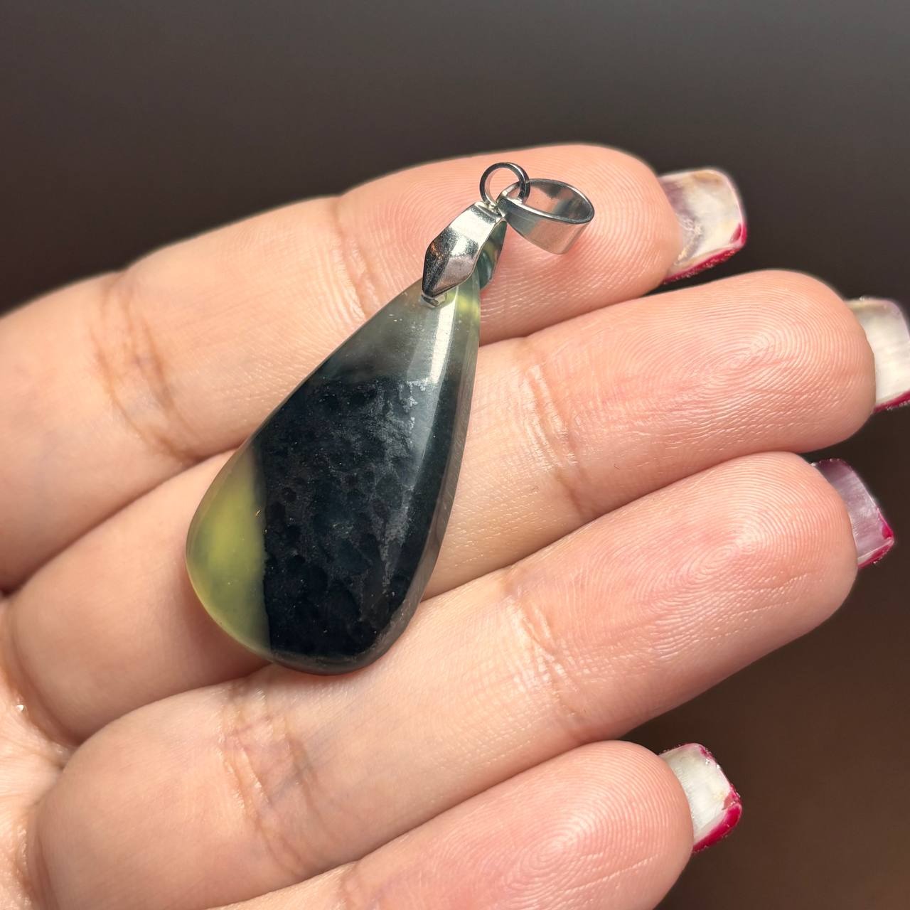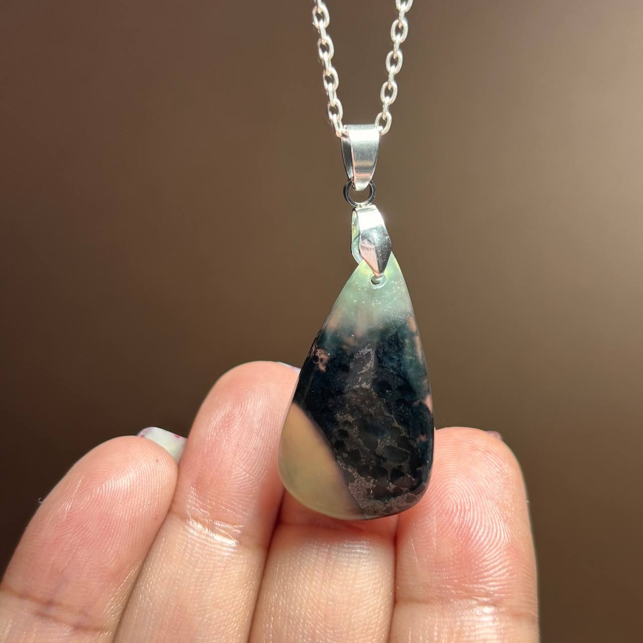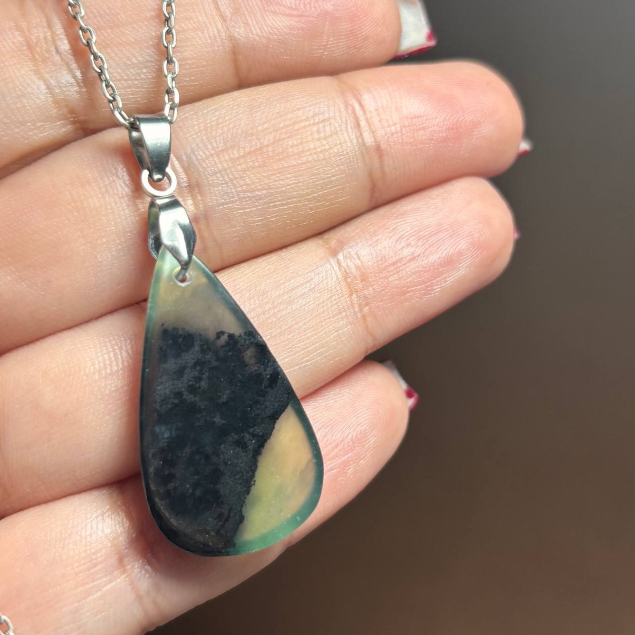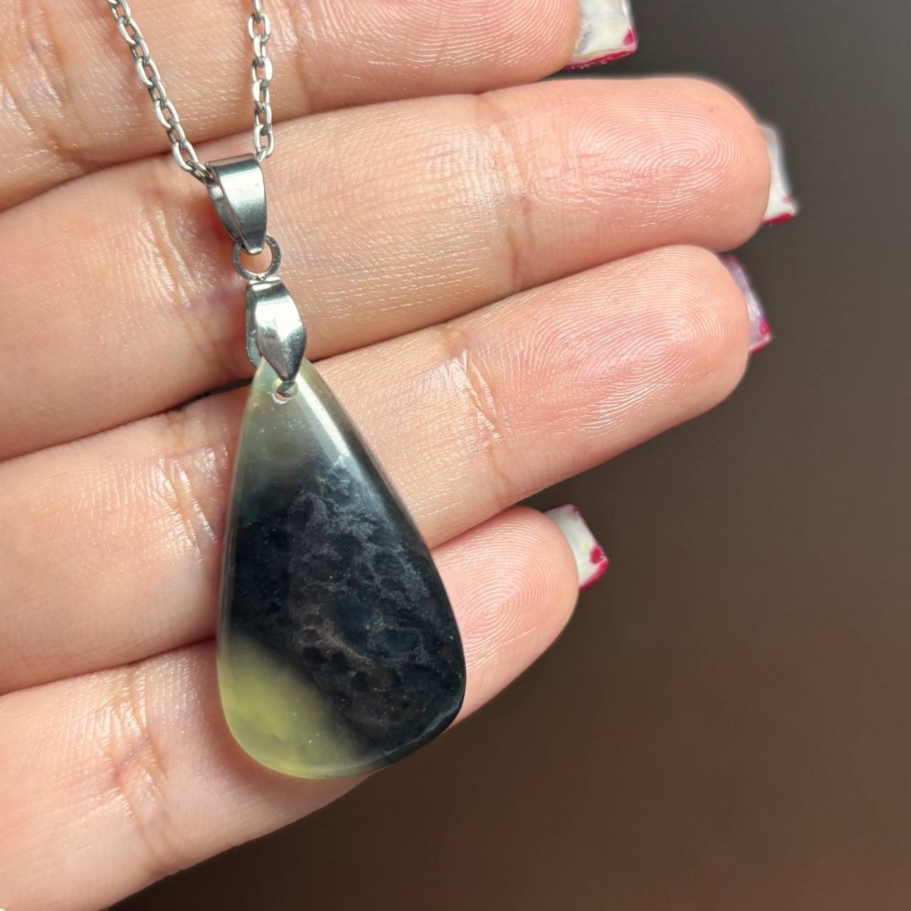 آویز گردنبند سنگ طبیعی یشم معدنی کد 60300