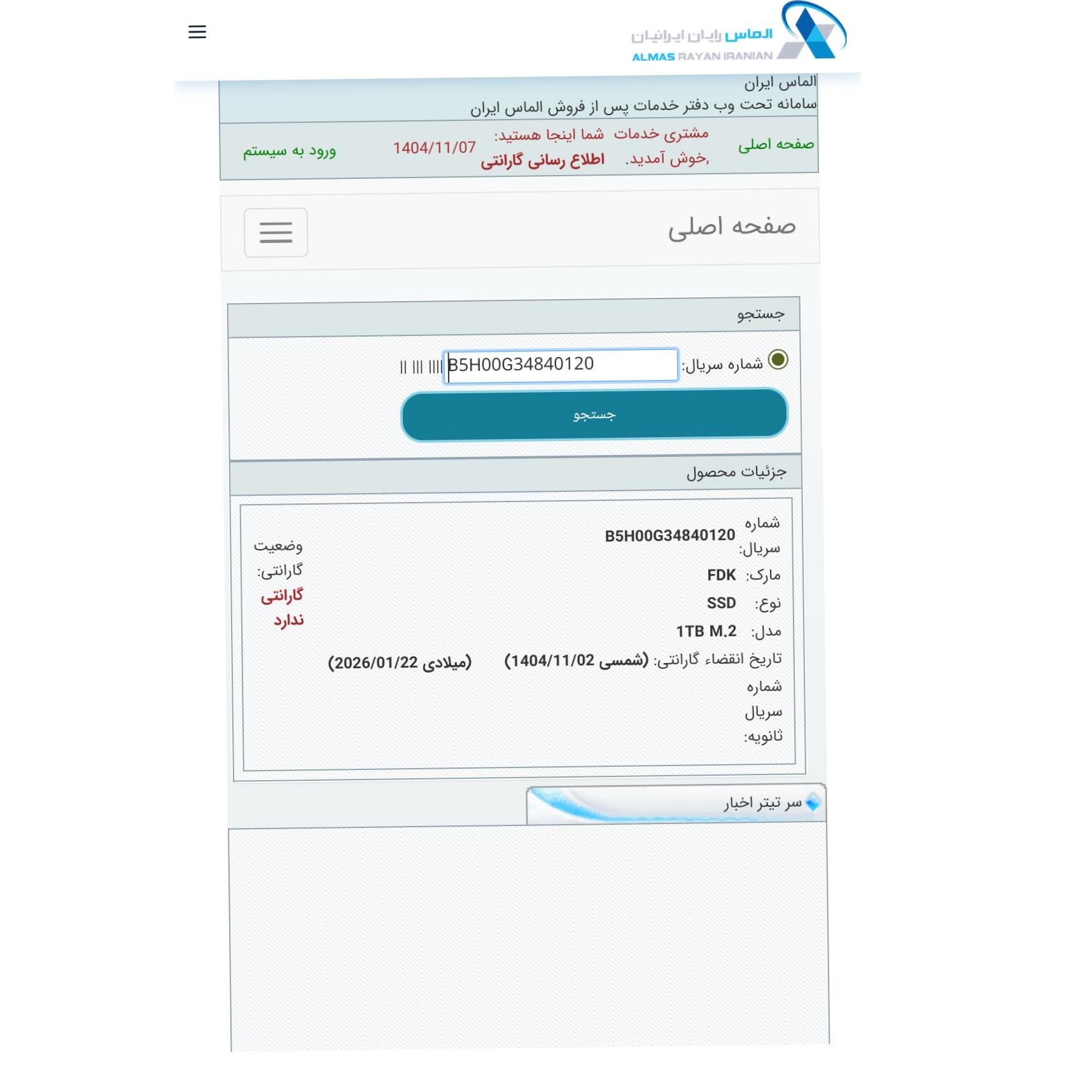طبق استعلام, گارانتی در دوم بهمن پایان یافته