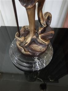 مجسمه قلع و سرب عدالت با پایه سنگی امضا دار به ارتفاع 90 سانتیمتر و وزن حدود 13 کیلوگرم مطابق تصویر واقعا زیبا و دکوری خاص ارسال فقط با باربری خواهشمندم از دیگر کالاهای اینجانب دیدن فرمایید.