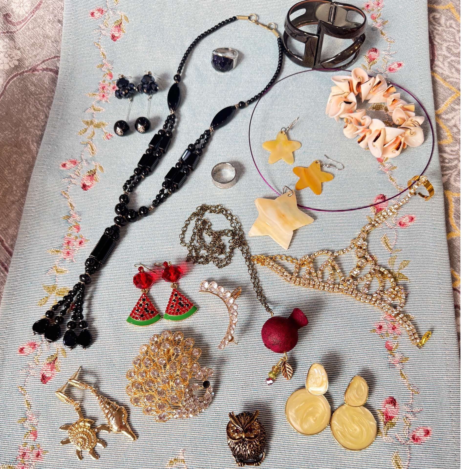 فروش زیورآلات فوق، بصورت یکجا، اکثرا کاملا نو هستن و چند آیتم یکبار استفاده شده، گردنبند مشکی سوغات هندوستان هست، ست ستاره ای از صدف طبیعی هست، از همه کارها عکس نزدیک و واضح موجوده، پیام بدید ارسال کنم خدمتتون.