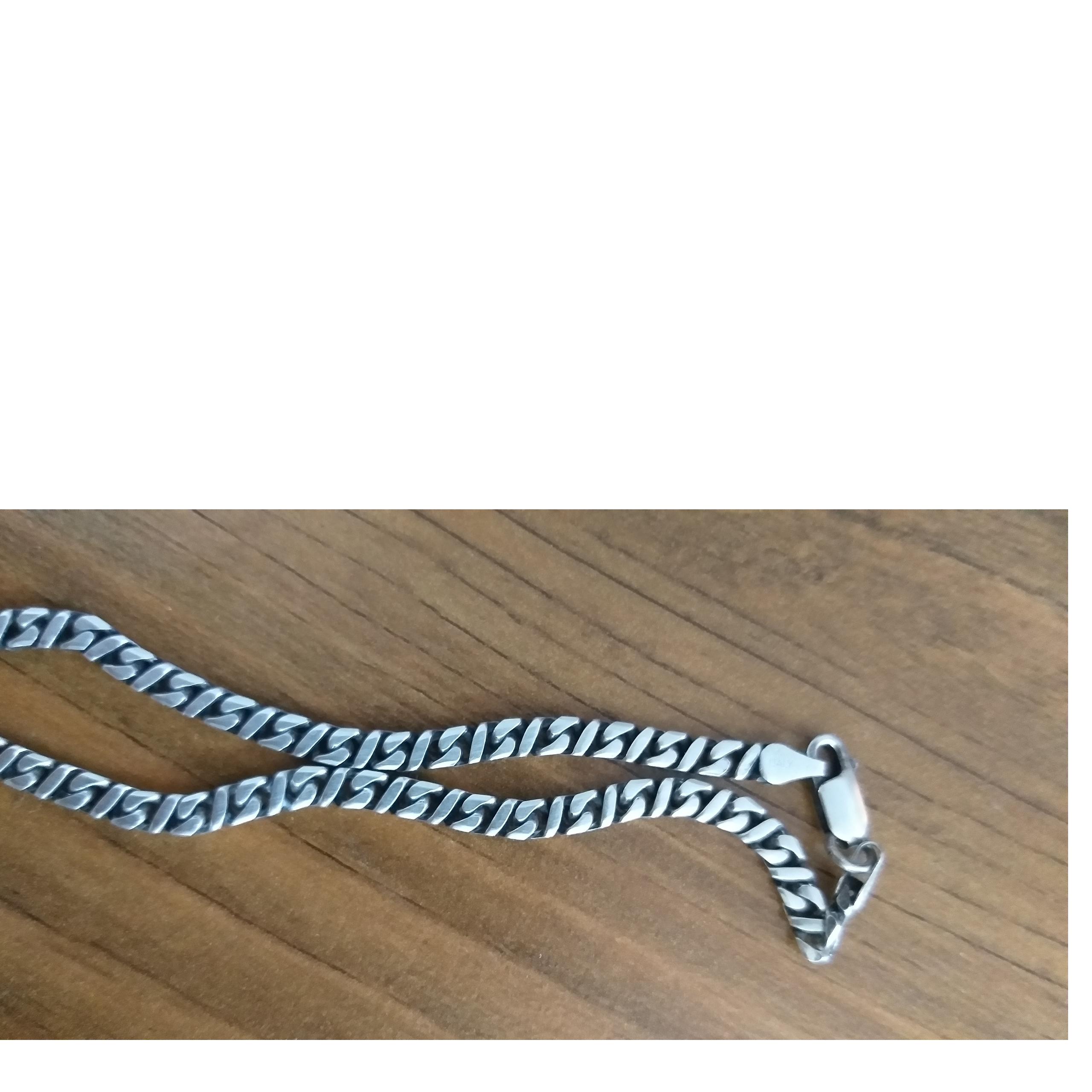 زنجیر نقره ایتالیایی کم نظیر و کمیاب.43 گرم 58 سانت.تراش دار .پهنا نیم سانت و ضخیم بشرط سیاه نشدن و ایتالیایی بودن