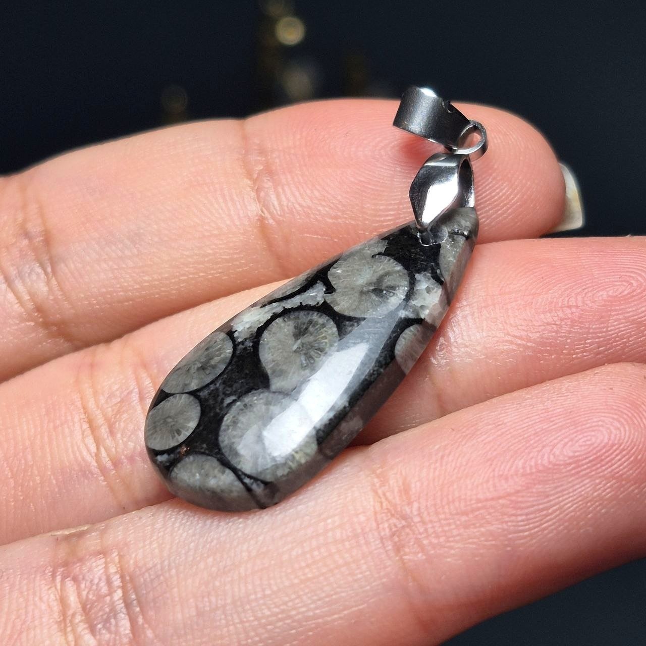 آویز گردنبند سنگ طبیعی فسیل مرجان معدنی کد60382