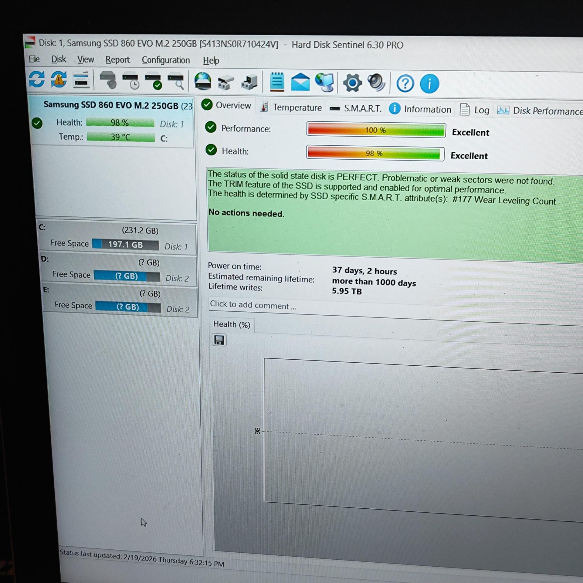 هارد بسیار سالم و دست خودم بوده ،سامسونگ معروفه نیازی به تعریف نداره،کارکرد 37 ساعت رسما درحد نو
