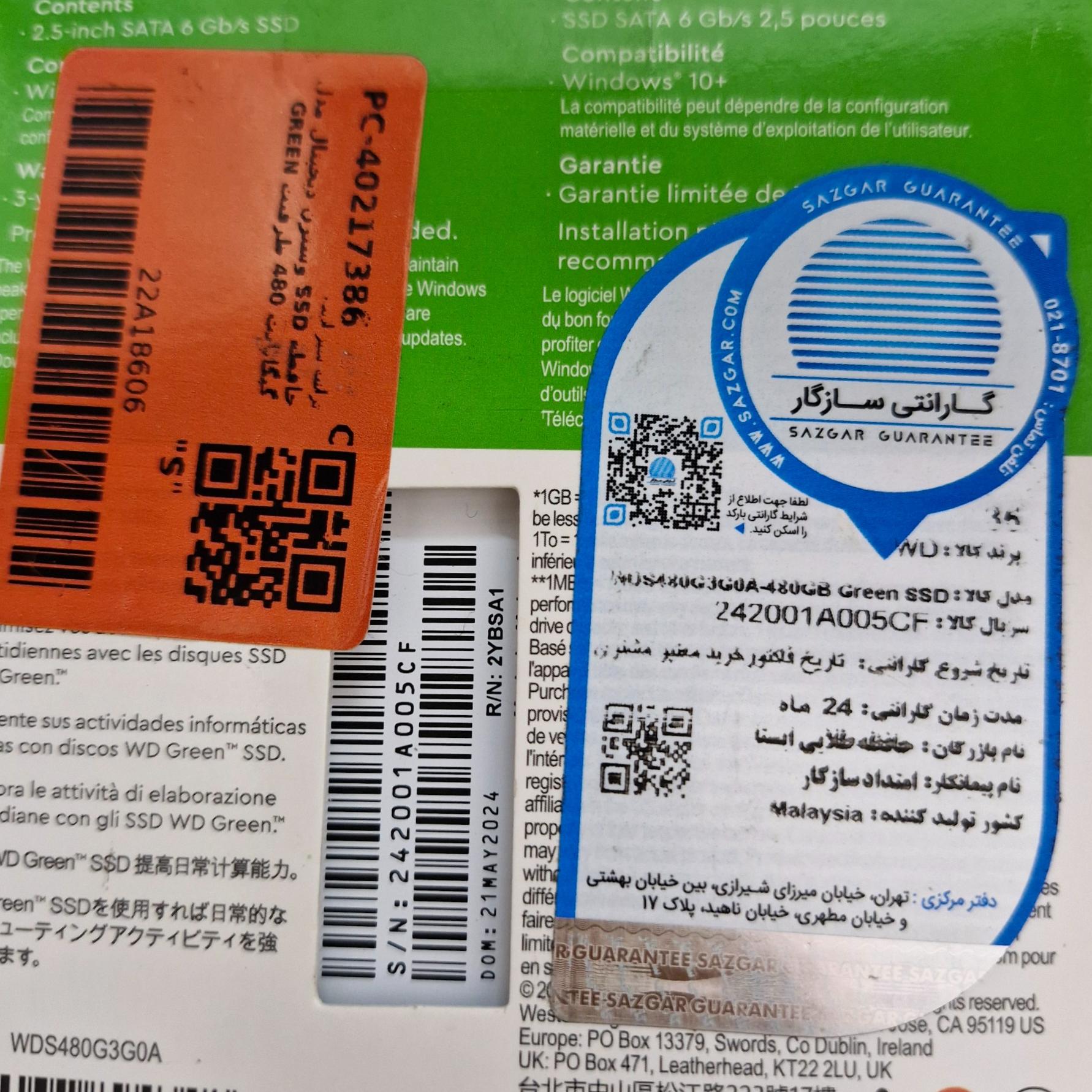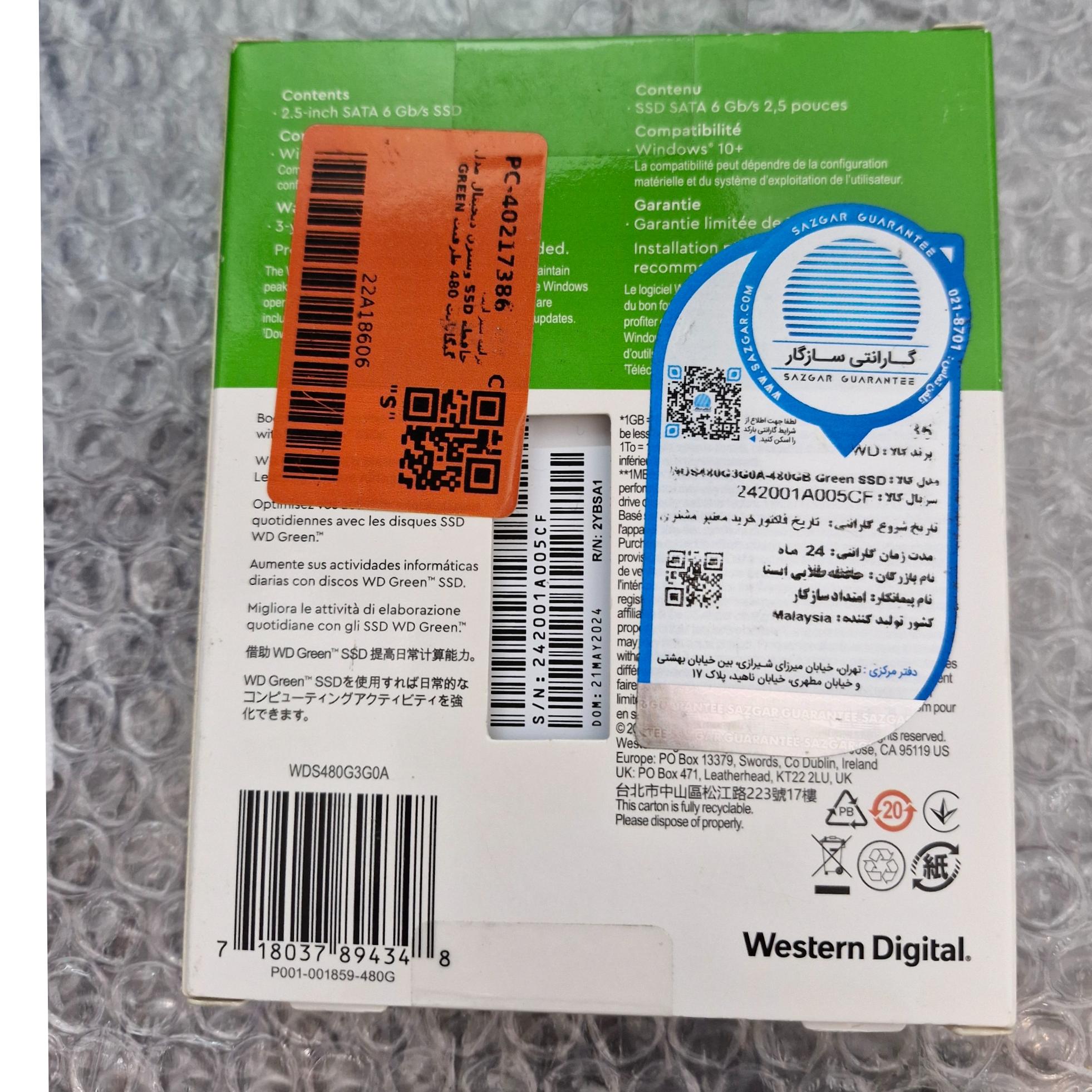 مدل SSD 480GB وسترن دیجیتال ساخت مالزی.