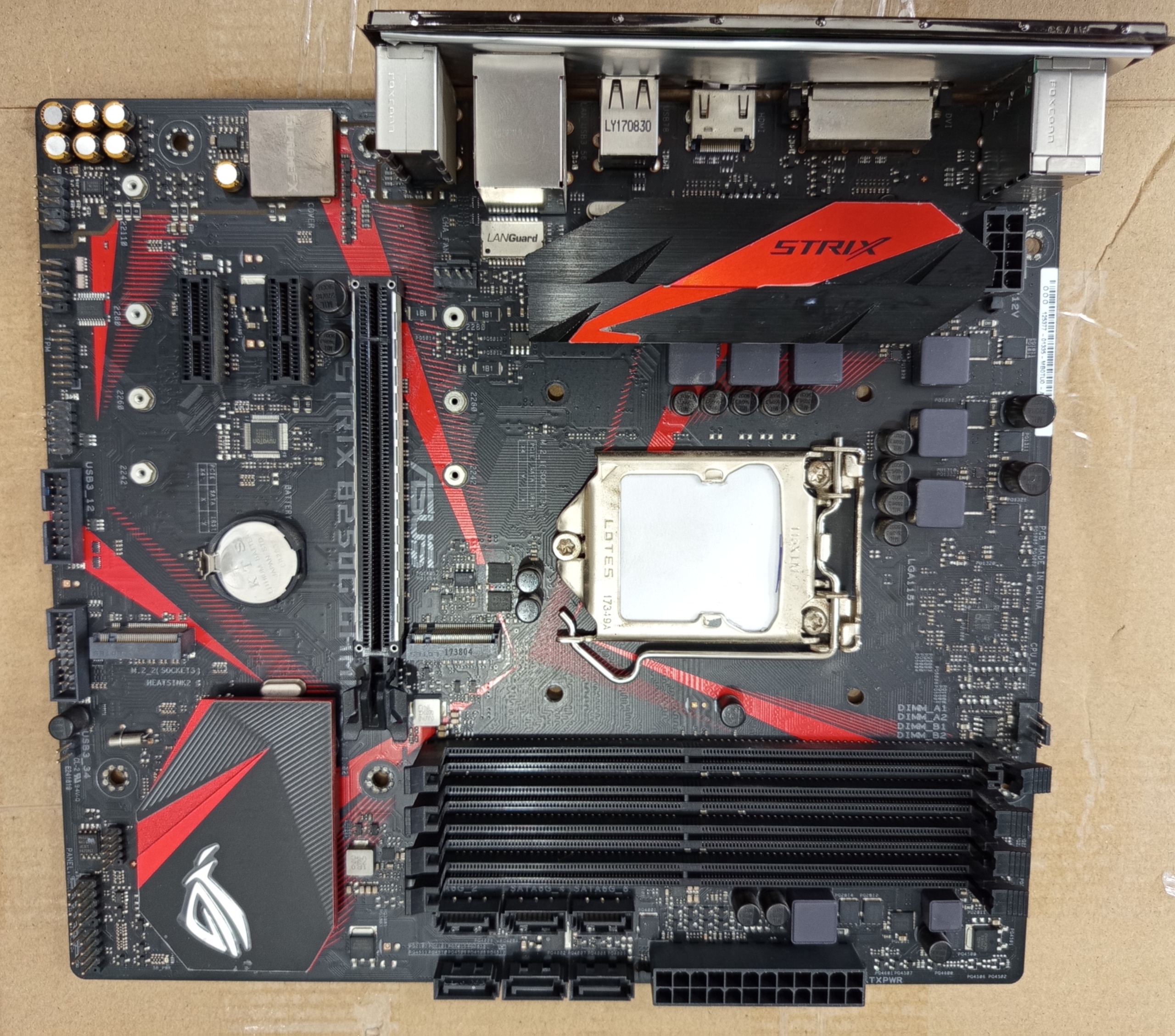 مادربرد یک عدد خار cpu شکسته ولی هیچ مشکلی در بالا آمدن و نصب و راه اندازی ایجاد نکرده و بارها نصب ویندوز و گیم انجام شده و صحیح و سلامت کامل را دارد و دما هم در بازی سنگین هم تغییر نمیکند من گفتم که تو گردنم نباشه مادربرد ایسوس راگ استریکس b250 gaming جای چهار عدد رم تا 128 گیگ رم ساپورت میکنه جای 6 عدد ساتا و جای دو عدد m2 دارد و از نسل 6 و 7 پشتیبانی میکند