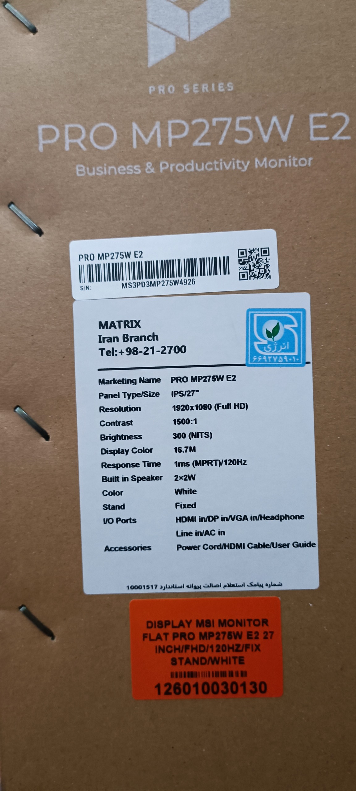 مانیتور 27 اینچ MSI مدل PRO MP275W E2