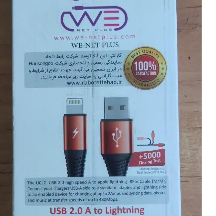 کابل USB-A به Lightning کابلیه که یک سرش USB معمولی (USB 2.0 / Type-A) هست و سر دیگهاش Lightning برای آیفون.