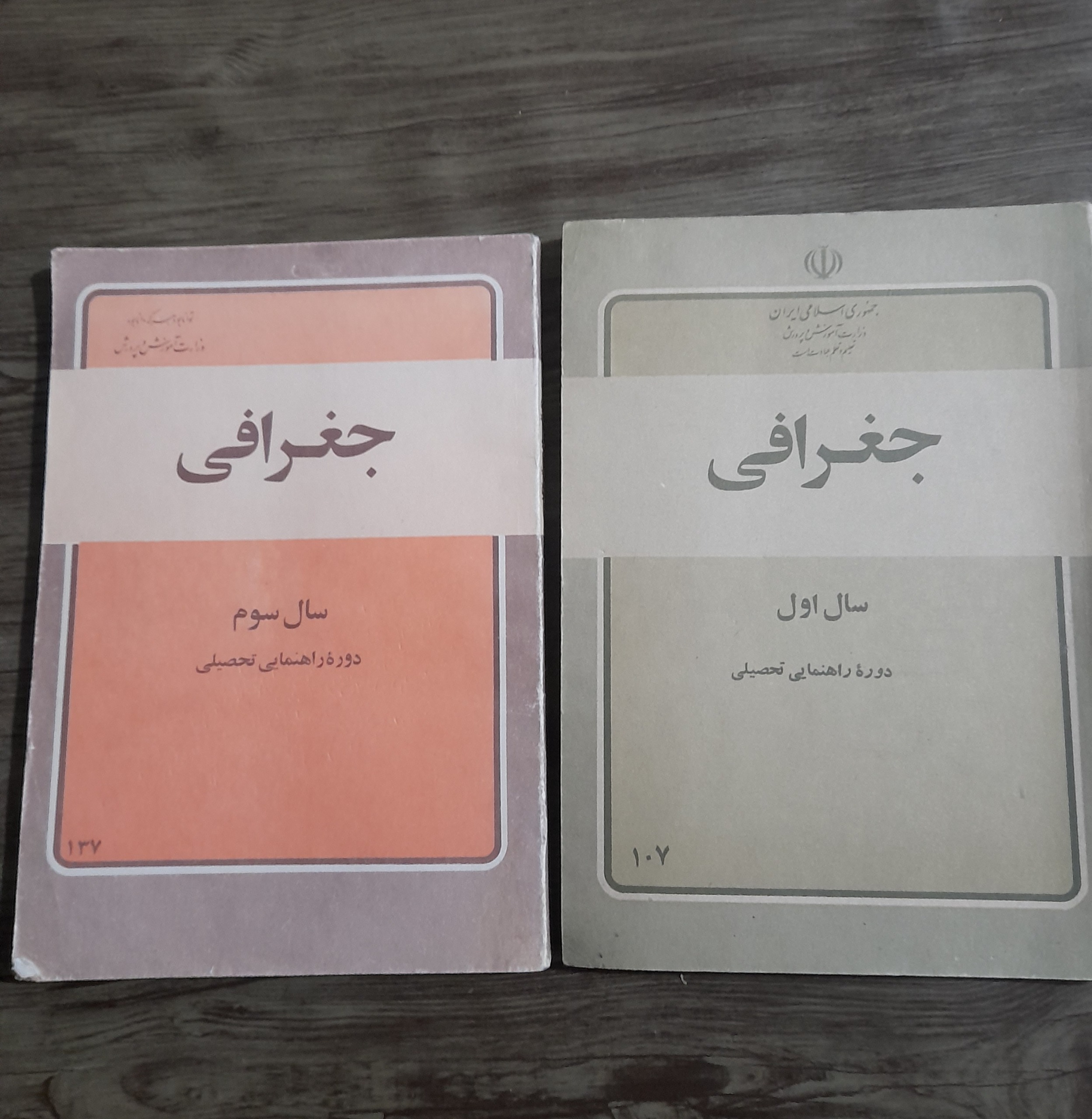 کتابهای درسی جغرافی اول راهنمایی سال 1360 و جغرافی سوم راهنمایی سال 1358.