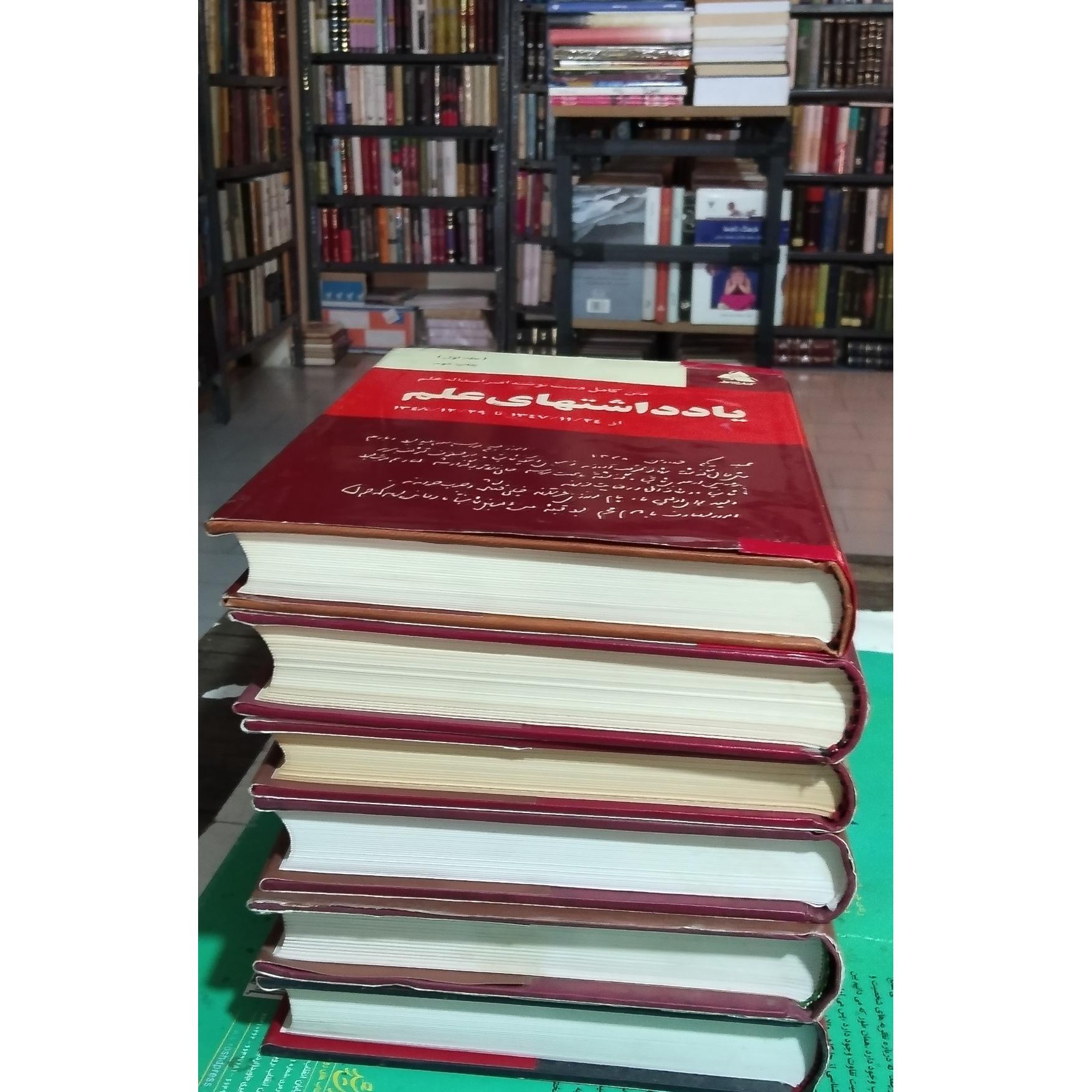 یادداشتهای علم وزیر دربار پهلوی 6 جلدی گالینگور وزیری روکش دار لب برگردان کاغذ با کیفیت هر جلد به فاصله از هم چاپ شده و به بازار آمده بوده نو بسیار تمیز و بسیار خواندنی این چاپ خیلی نایاب و قدیمی است چاپ جلد اول اولین چاپ 1386