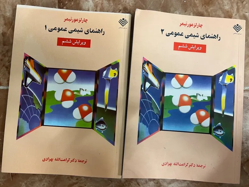 مجموعه دو جلدی شیمی عمومی مورتیمر همراه با راهنمای اونها در کل چهار جلد ارسال میشه خدمتتون، دو جلد سایز بزرگ دوجلد راهنما قطع کوچک و تمیز
