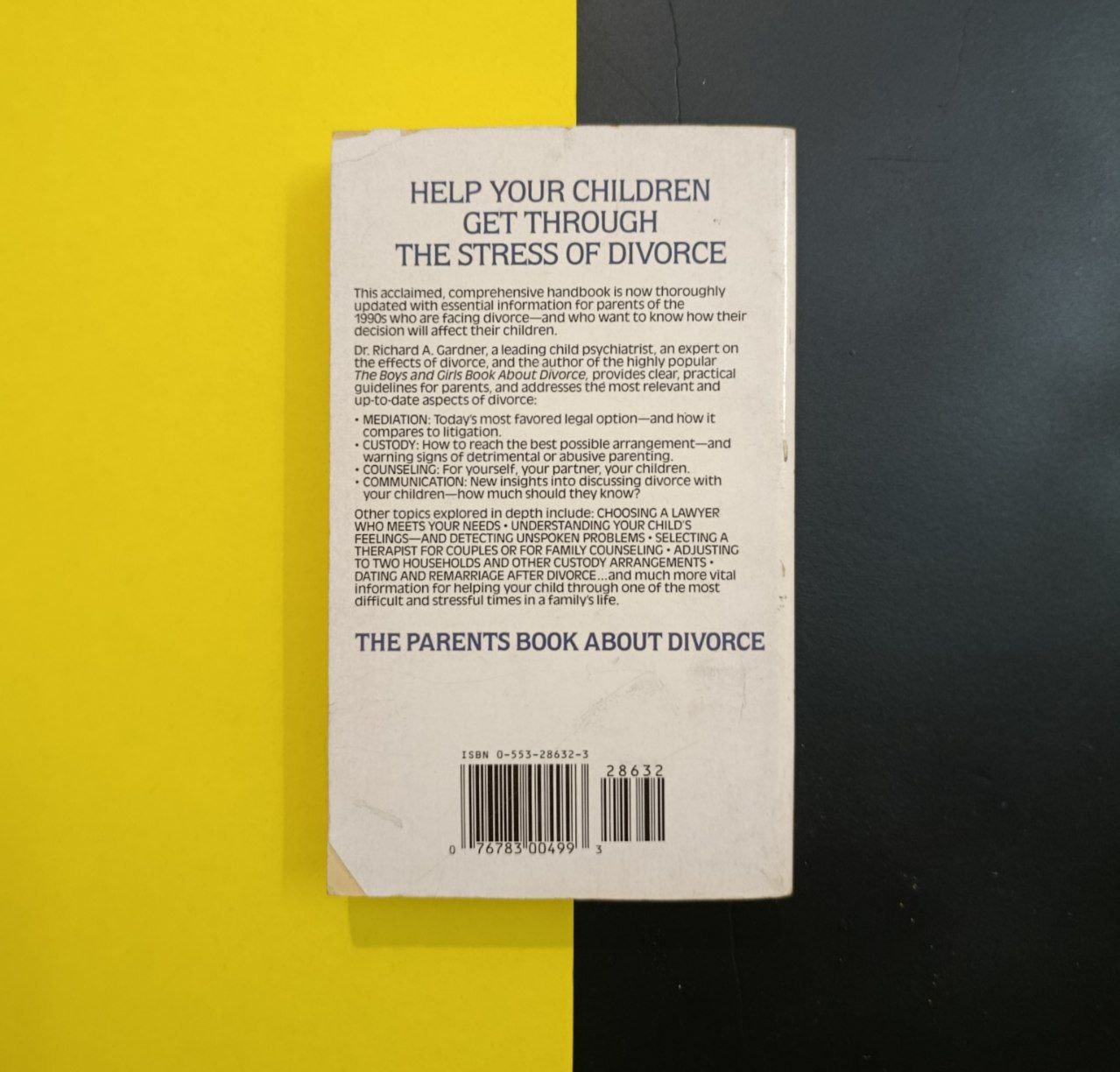 این اثر نوشته ریچارد آ. گاردنر، روانپزشک کودکان و استاد دانشگاه کلمبیا، راهنمایی عملی و روانشناختی برای والدینی است که در آستانه یا پس از جدایی قرار دارند-این اثر با تمرکز بر اثرات عاطفی طلاق بر فرزندان، به والدین کمک میکند تا با توضیح صادقانه و حمایتگرایانه