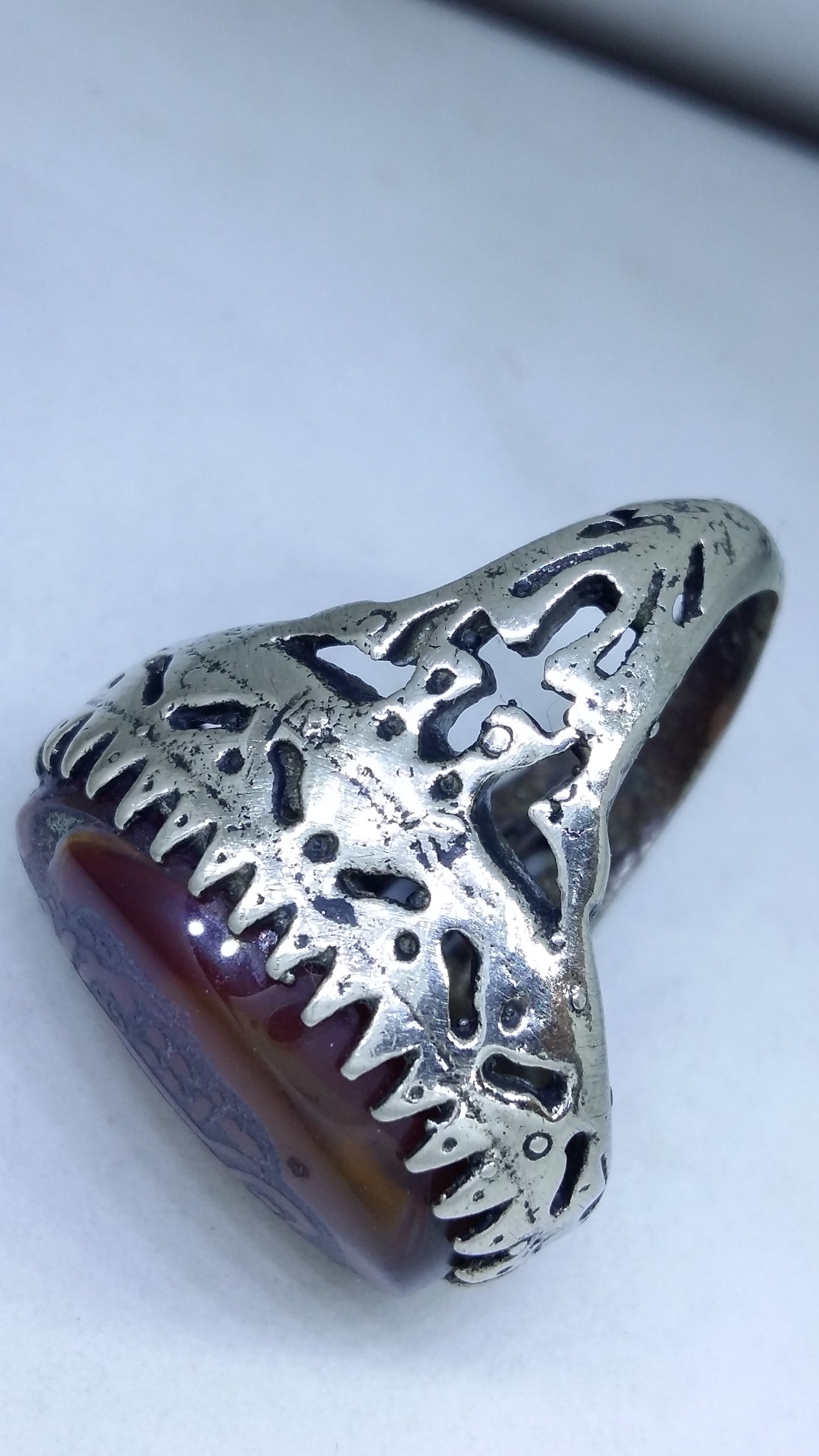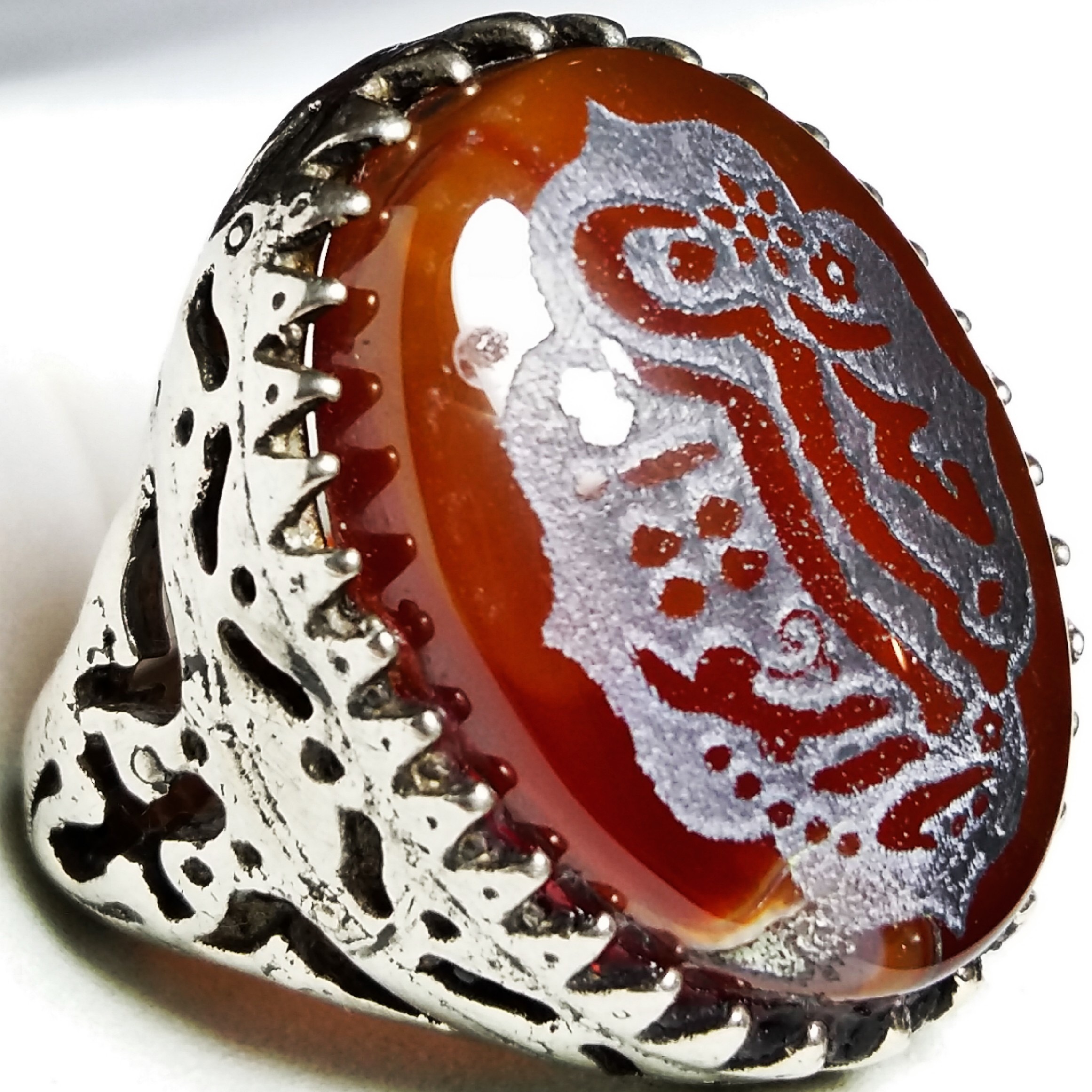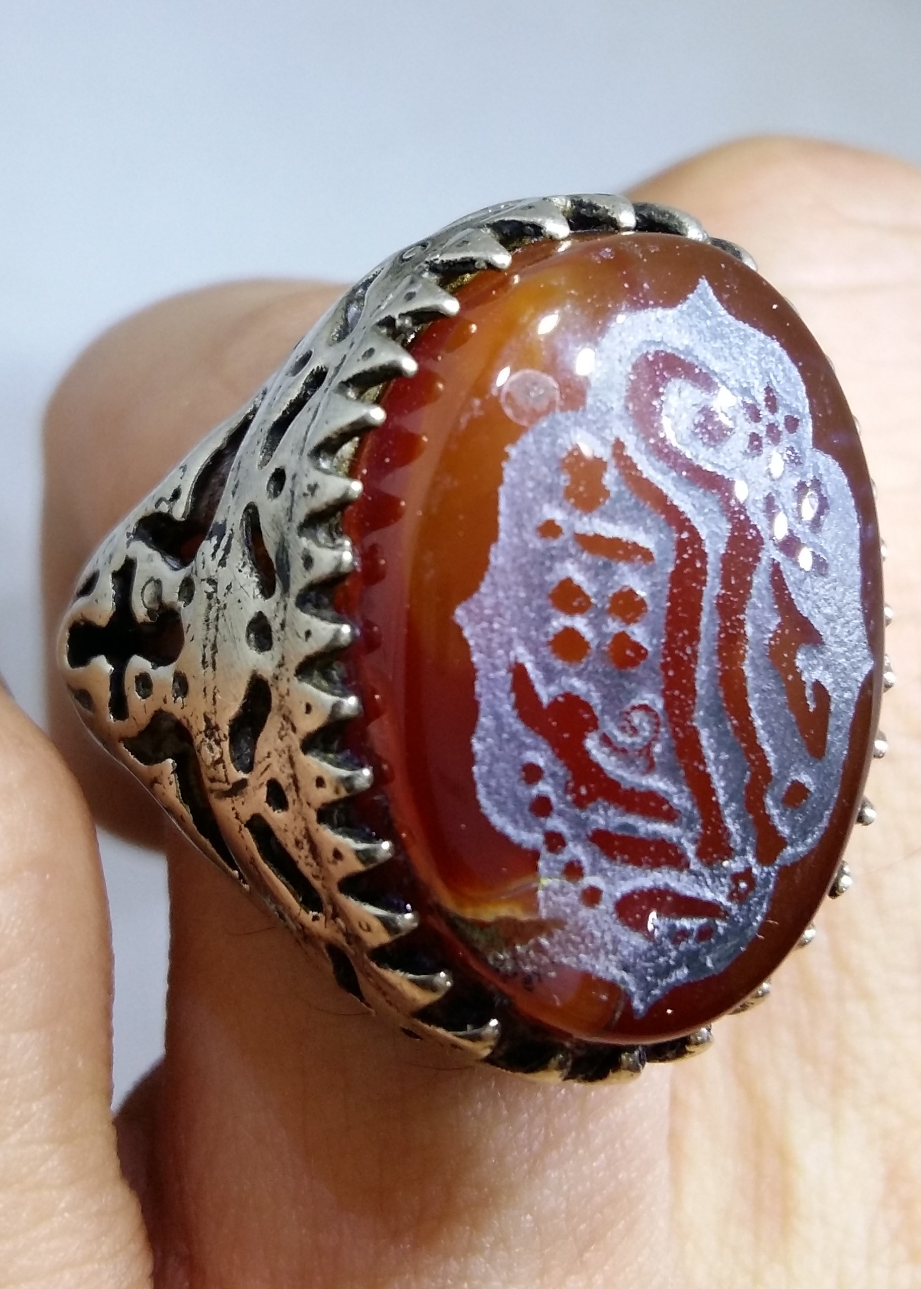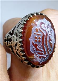 انگشتر اشرافی عقیق سرخ با حک یا امیرالمؤمنین ع