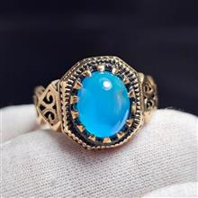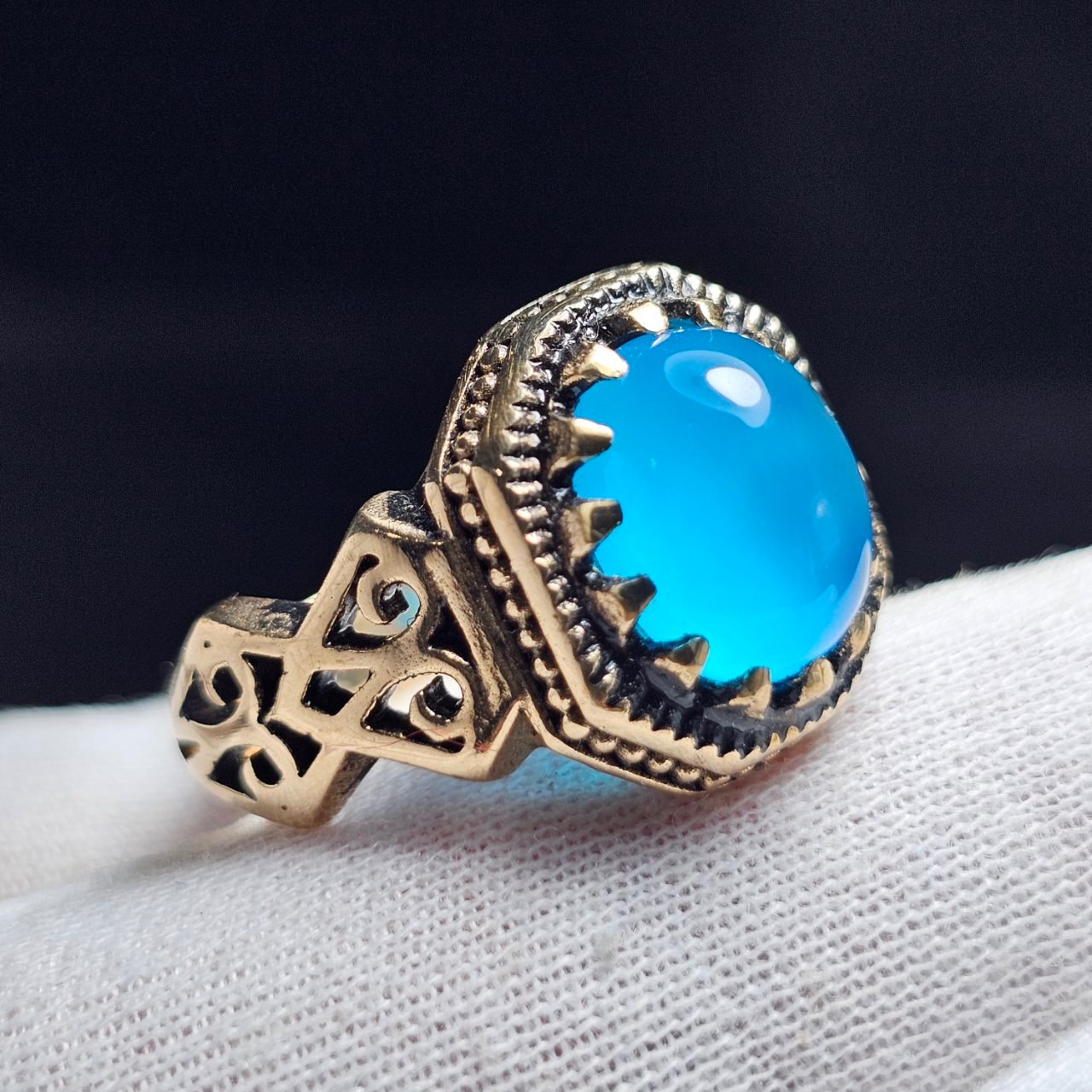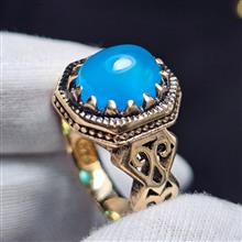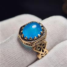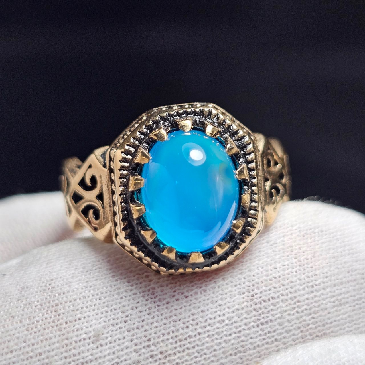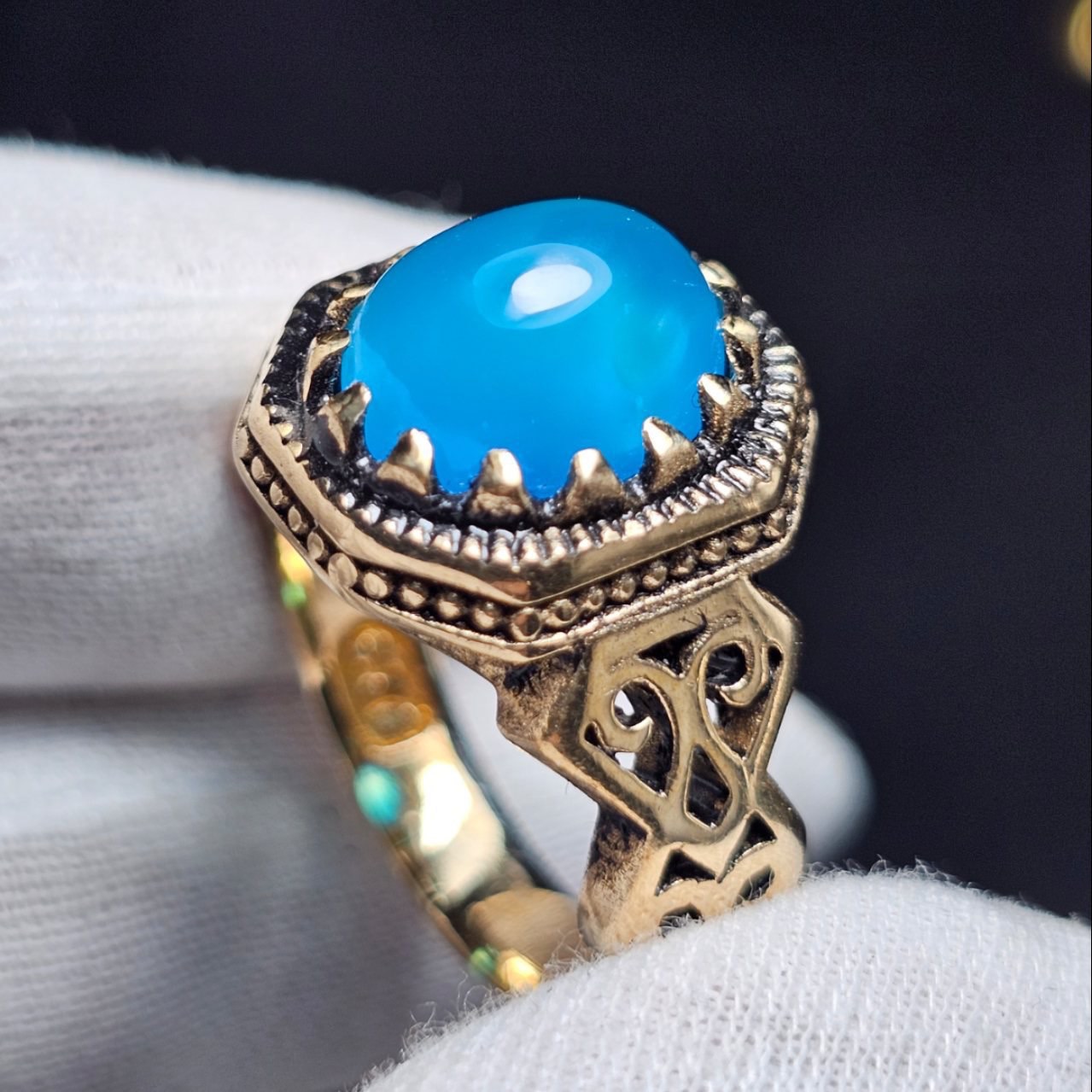انگشتر طلا روس با سنگ عقیق آبی آبدار معدنی