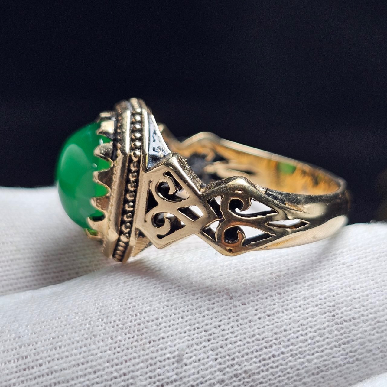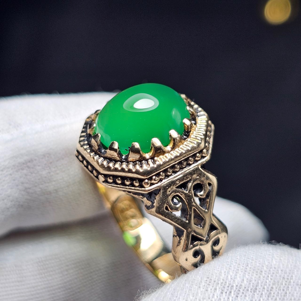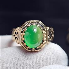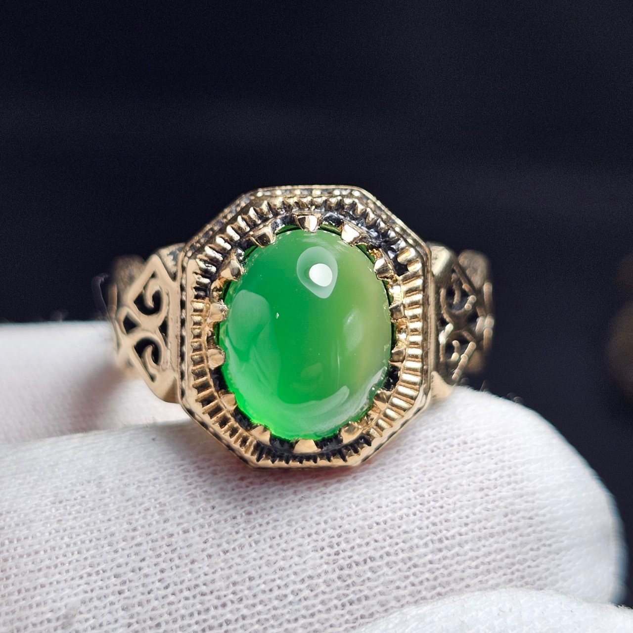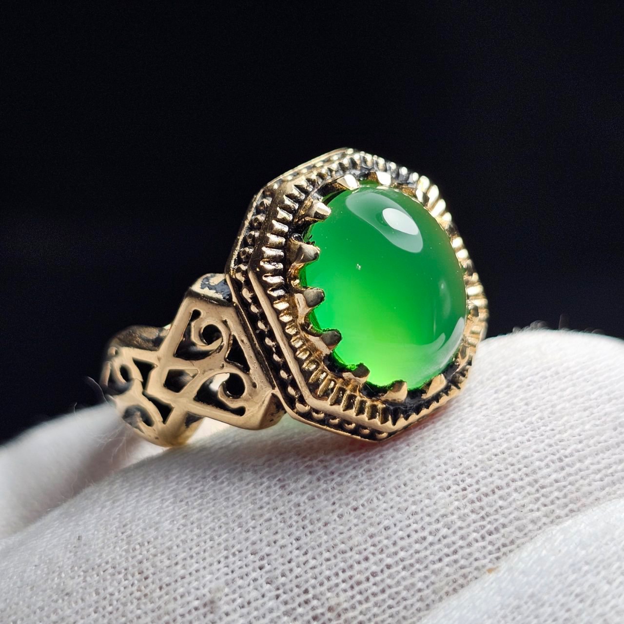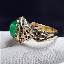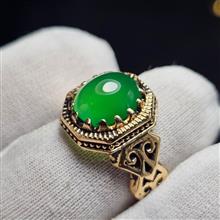 انگشتر طلا روس با سنگ عقیق سبز آبدار معدنی