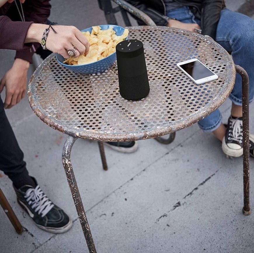 فناوری BOSE SIMPLESYNC: SimpleSync بلندگوی بلوتوث Bose SoundLink Revolve II خود را با محصولات سازگار Bose جفت میکند تا صدایی که از اتاقی به اتاق دیگر شما را دنبال میکند، داشته باشید. دور از تلفن خود، دکمه بلوتوث را روی هر دستگاه فشار داده و نگه دارید تا صدای آنها همگامسازی شود. در حال حاضر یک گروه را فعال کردهاید. با فشار دادن دکمه Action، در یک لحظه به هم متصل شوید.