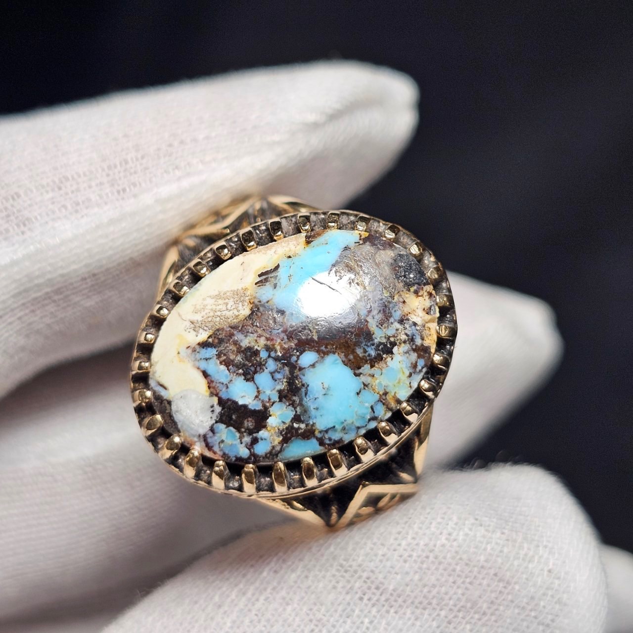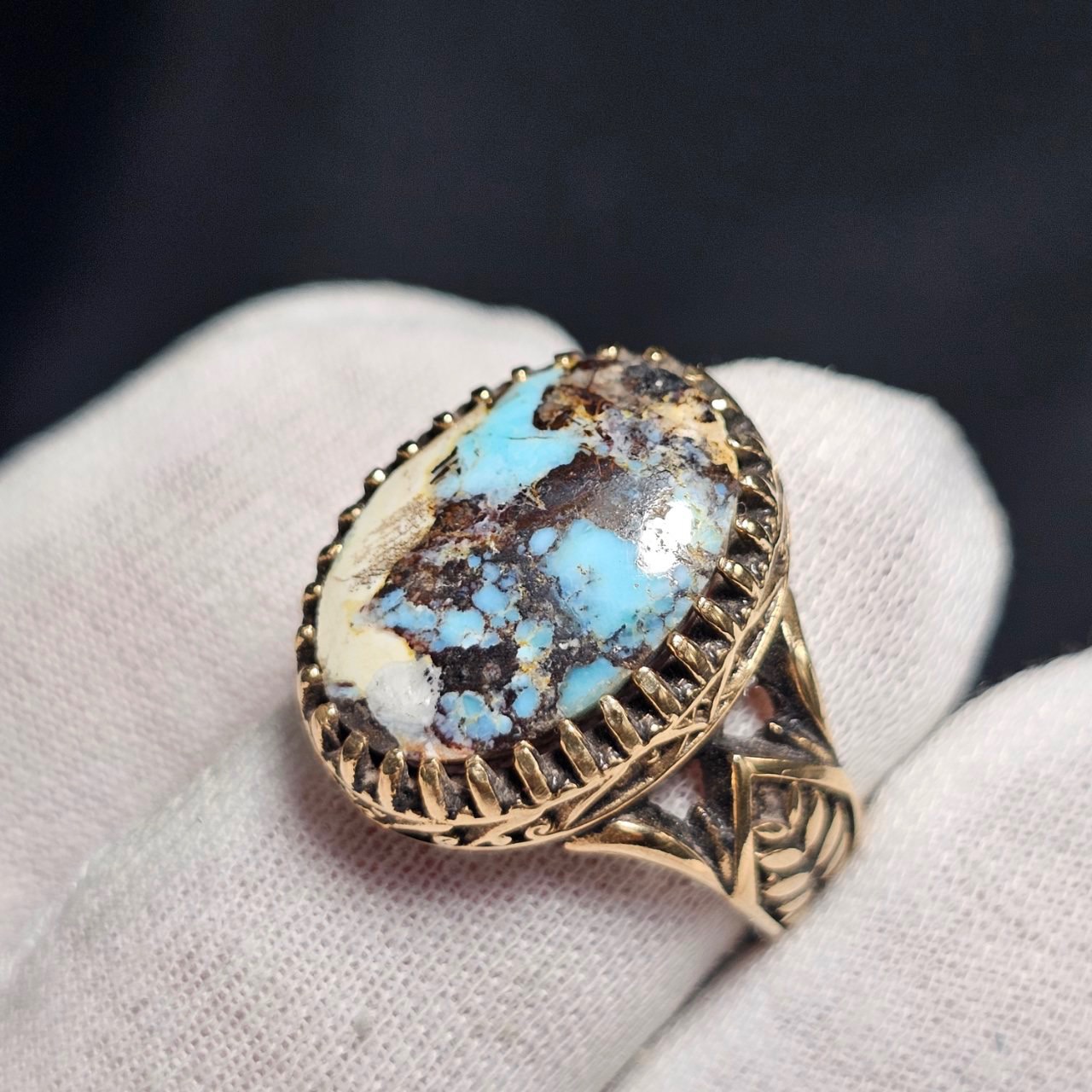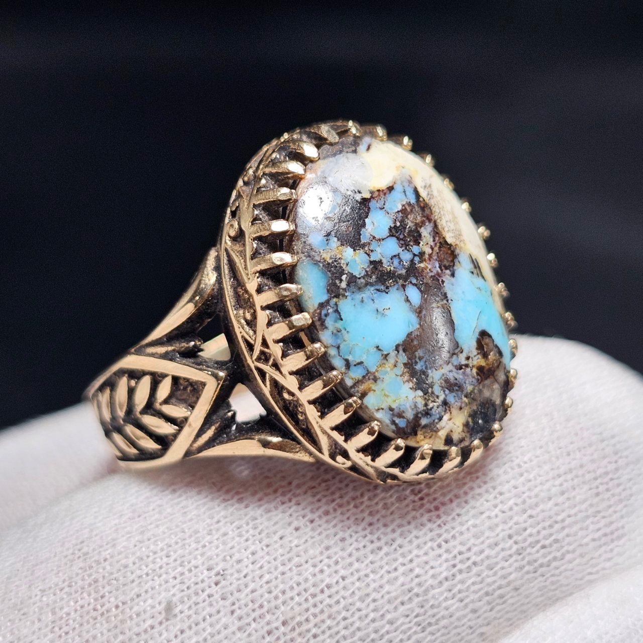 انگشتر با سنگ طبیعی فیروزه معدنی نیشابور (ابکاری نقره ای)