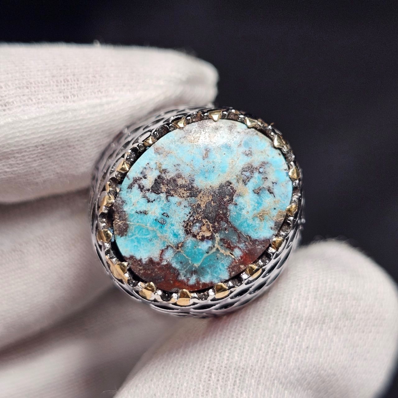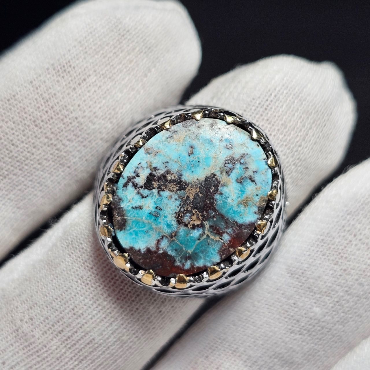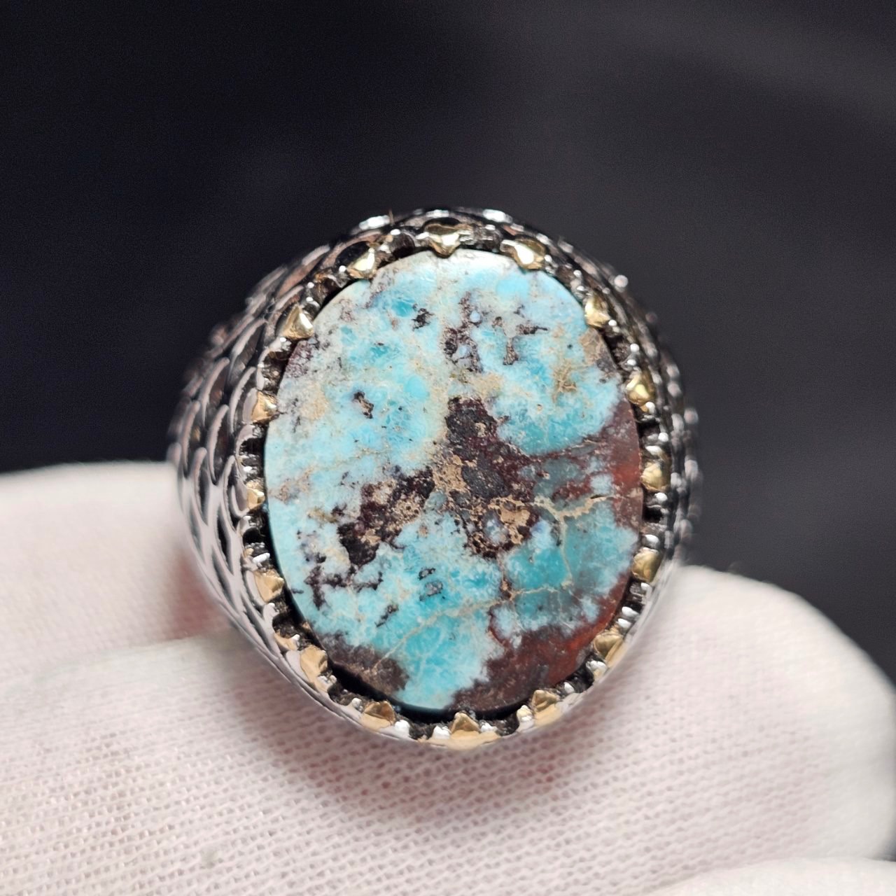 انگشتر با سنگ طبیعی فیروزه معدنی نیشابور (ابکاری  نقره ای)