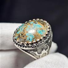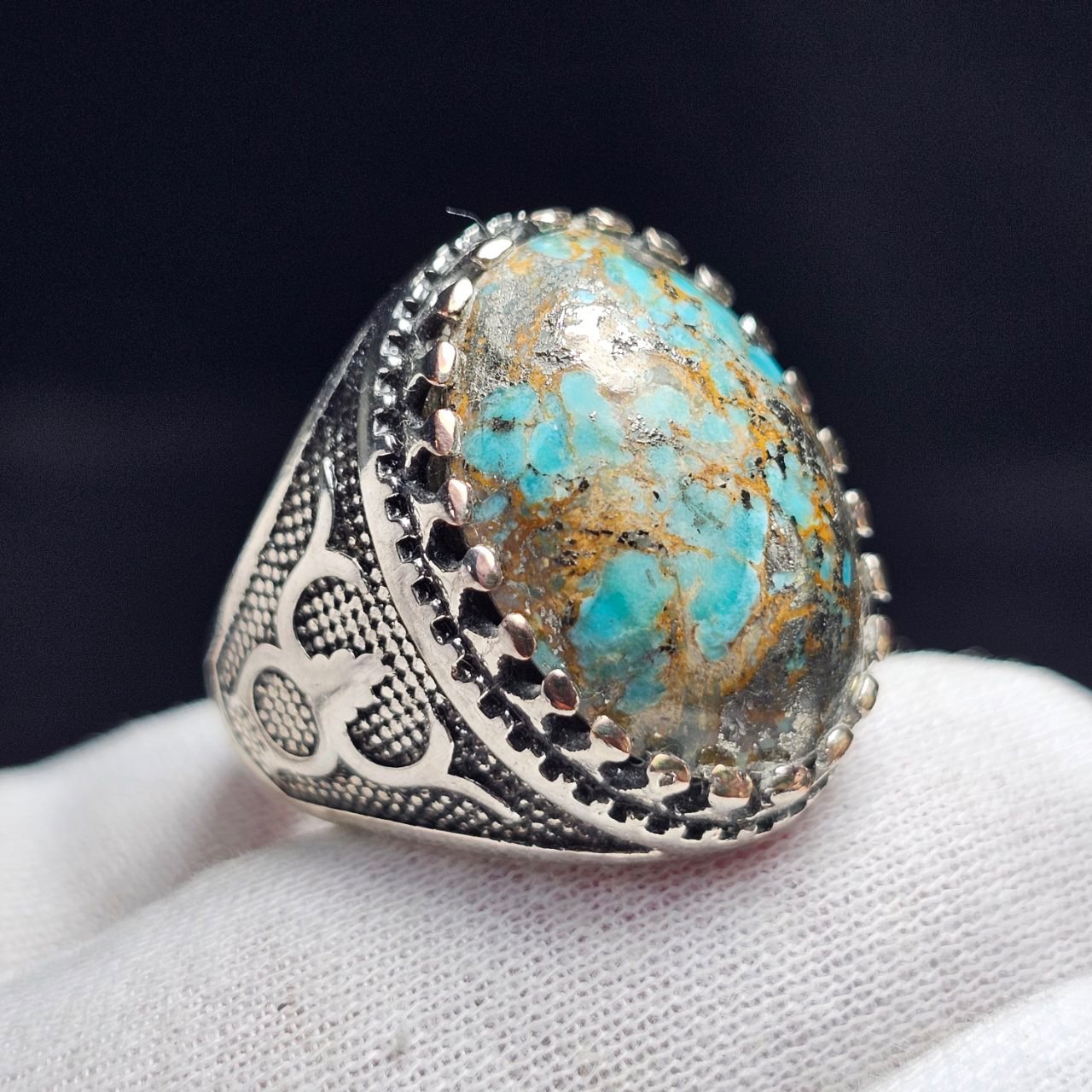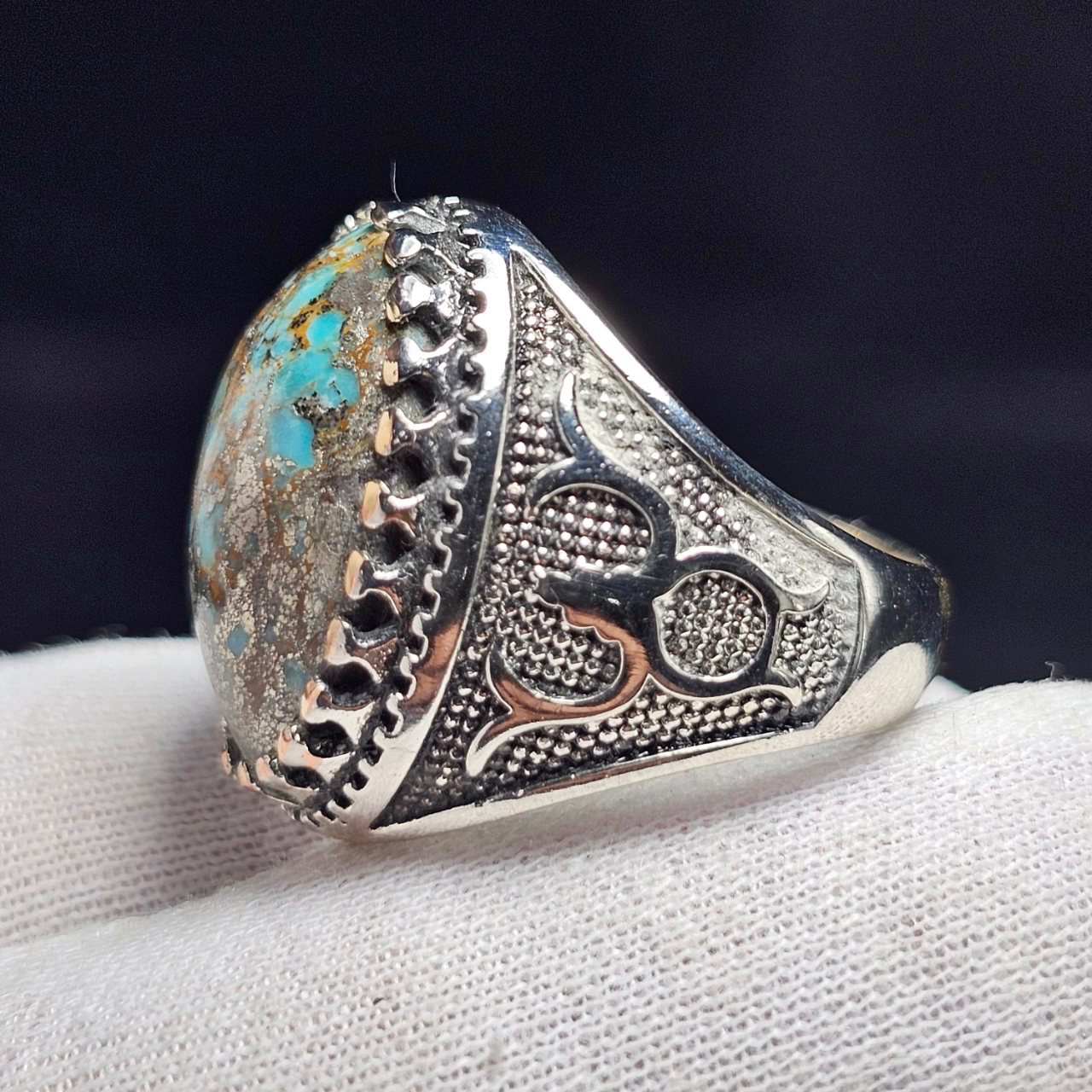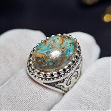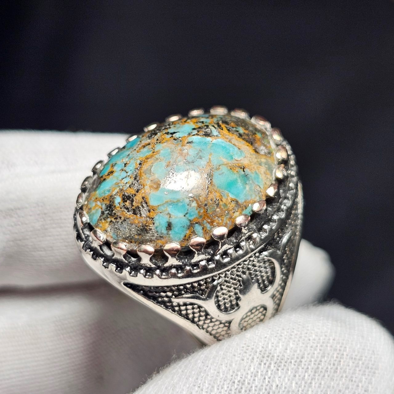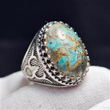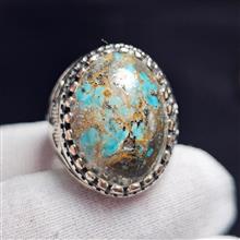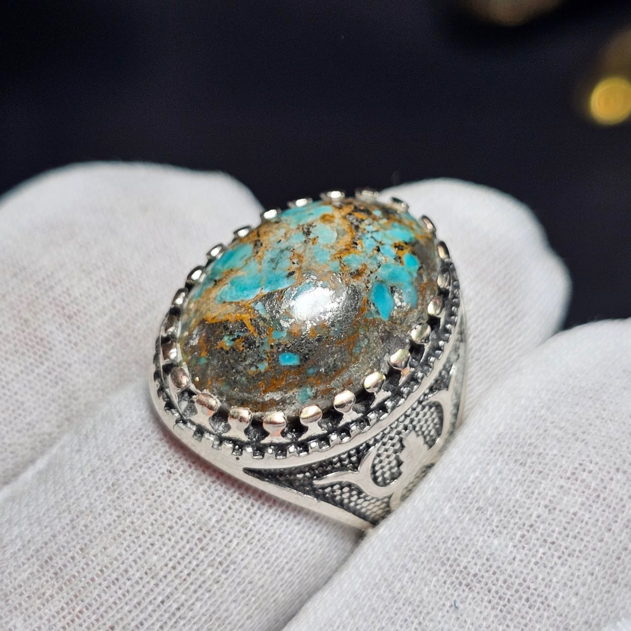 انگشتر با سنگ طبیعی فیروزه معدنی نیشابور (ابکاری نقره ای)